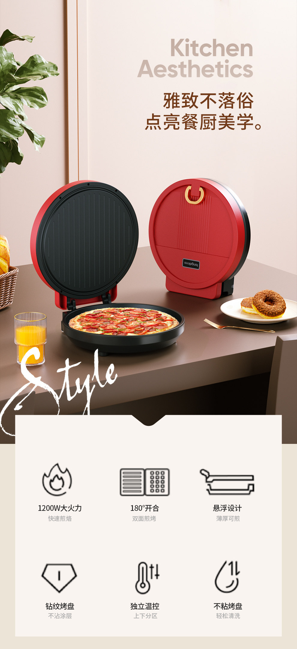 龙的电饼铛家用多功能煎饼铛悬浮烤盘煎烤机优质控温烙饼机三明治早餐机蛋饼机
