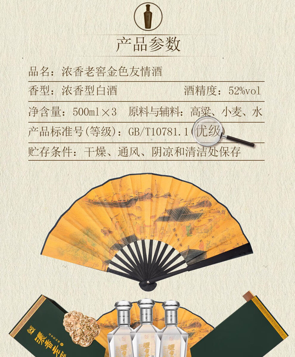 泸州老窖金色友情三支礼盒52度浓香型白酒优级纯粮食酒节日高档送礼宴请宾客