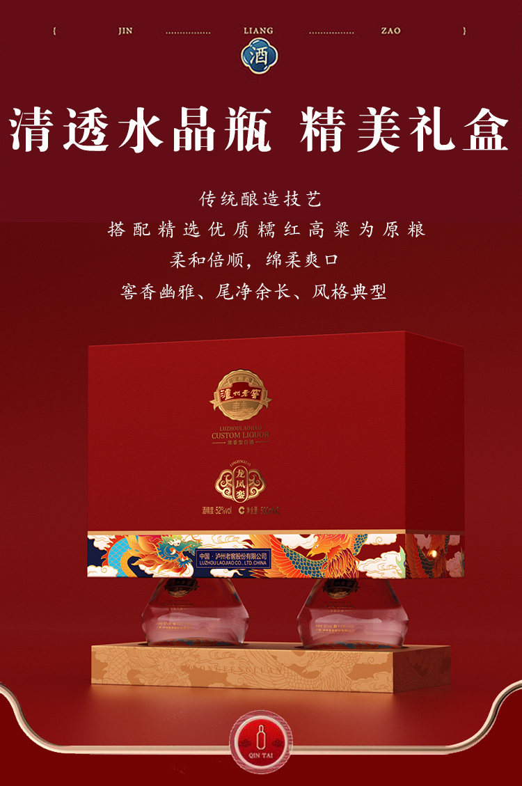 泸州老窖龙年生肖酒龙凤銮52度浓香型白酒高档纯粮食酒送礼佳品礼盒装