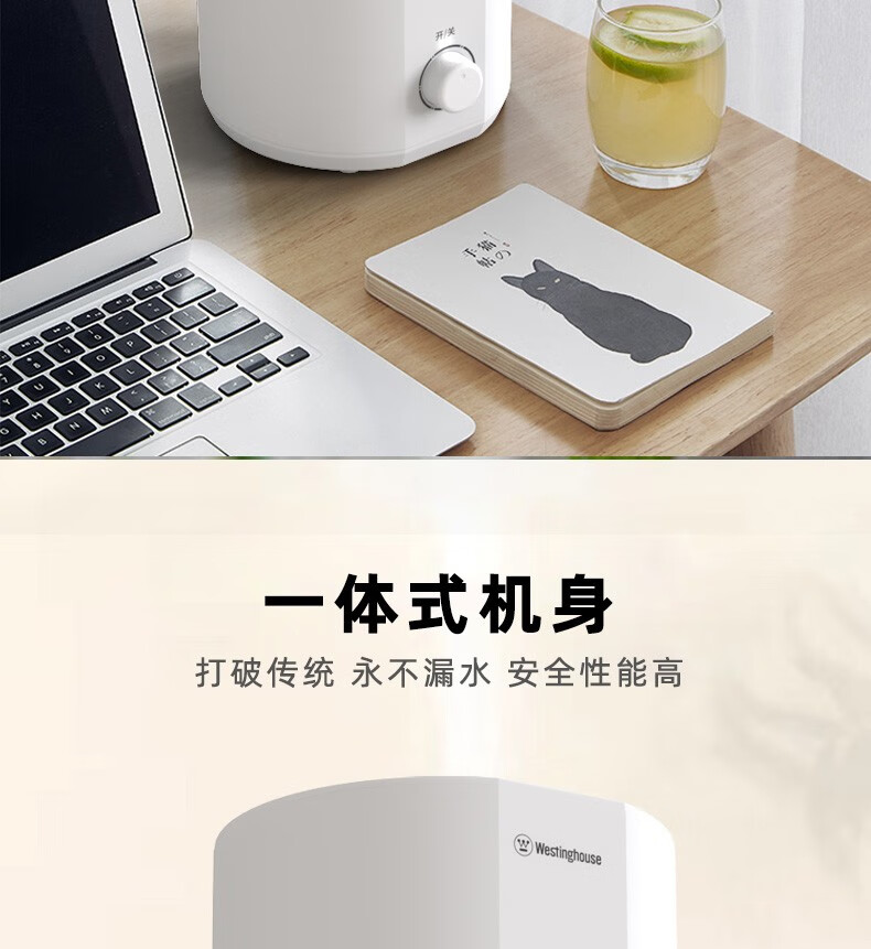 西屋 Westinghouse 空气加湿器 卧室家用办公室桌面空气加湿轻音加湿WHT-200 白色