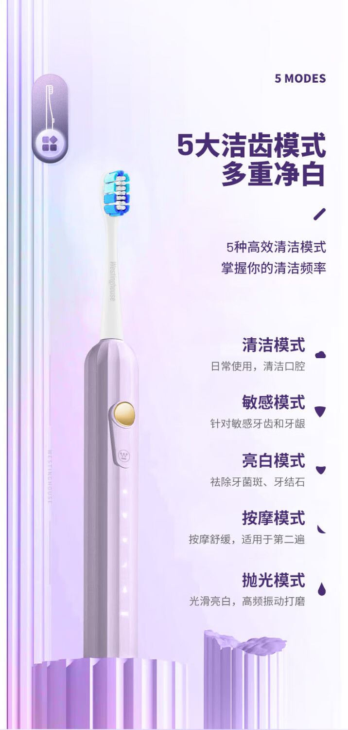 西屋Westinghouse 智能电动牙刷家用充电式软毛牙刷送男生女生礼物 节日好礼WT-0506