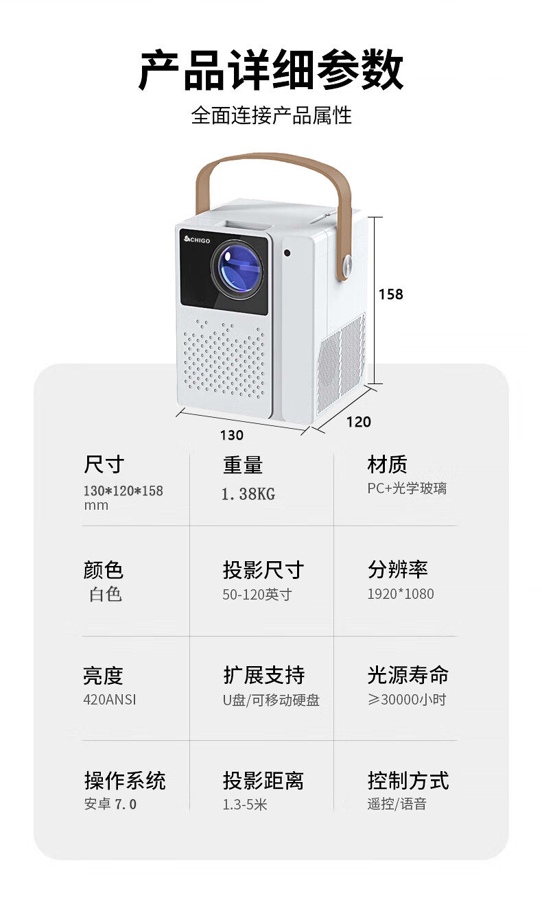 志高2024新款智能投影仪家用高清超清学生宿舍投影机卧室连手机小型影院401(标配)