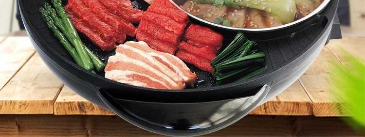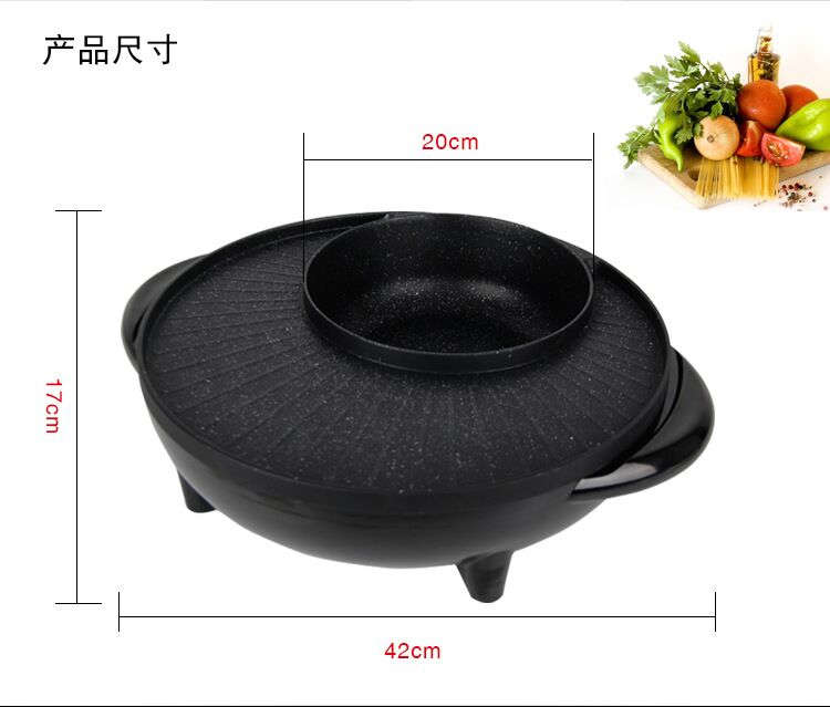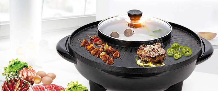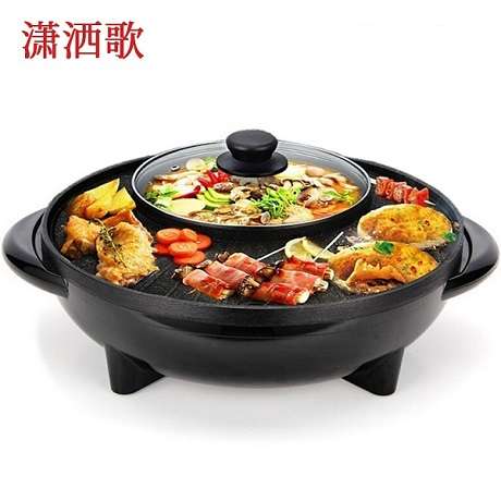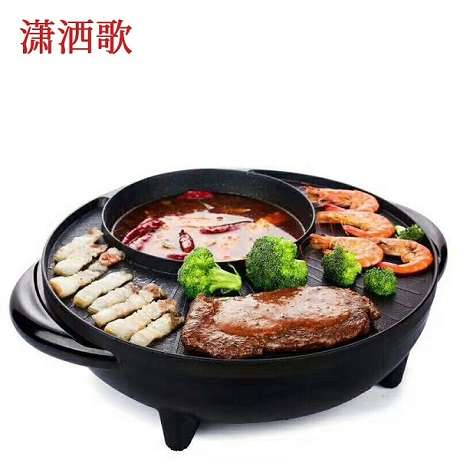 【全能烹饪 一锅搞定】潇洒歌 多功能大容量家用电烤炉电火锅烧烤炉烧烤锅日月神锅麦饭石电热锅韩式涮烤一体锅多功能电烧烤盘日月锅 黑色