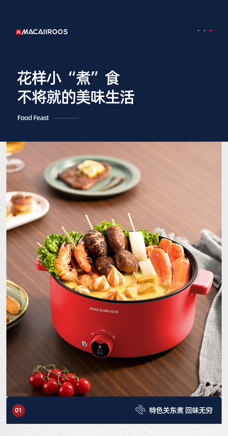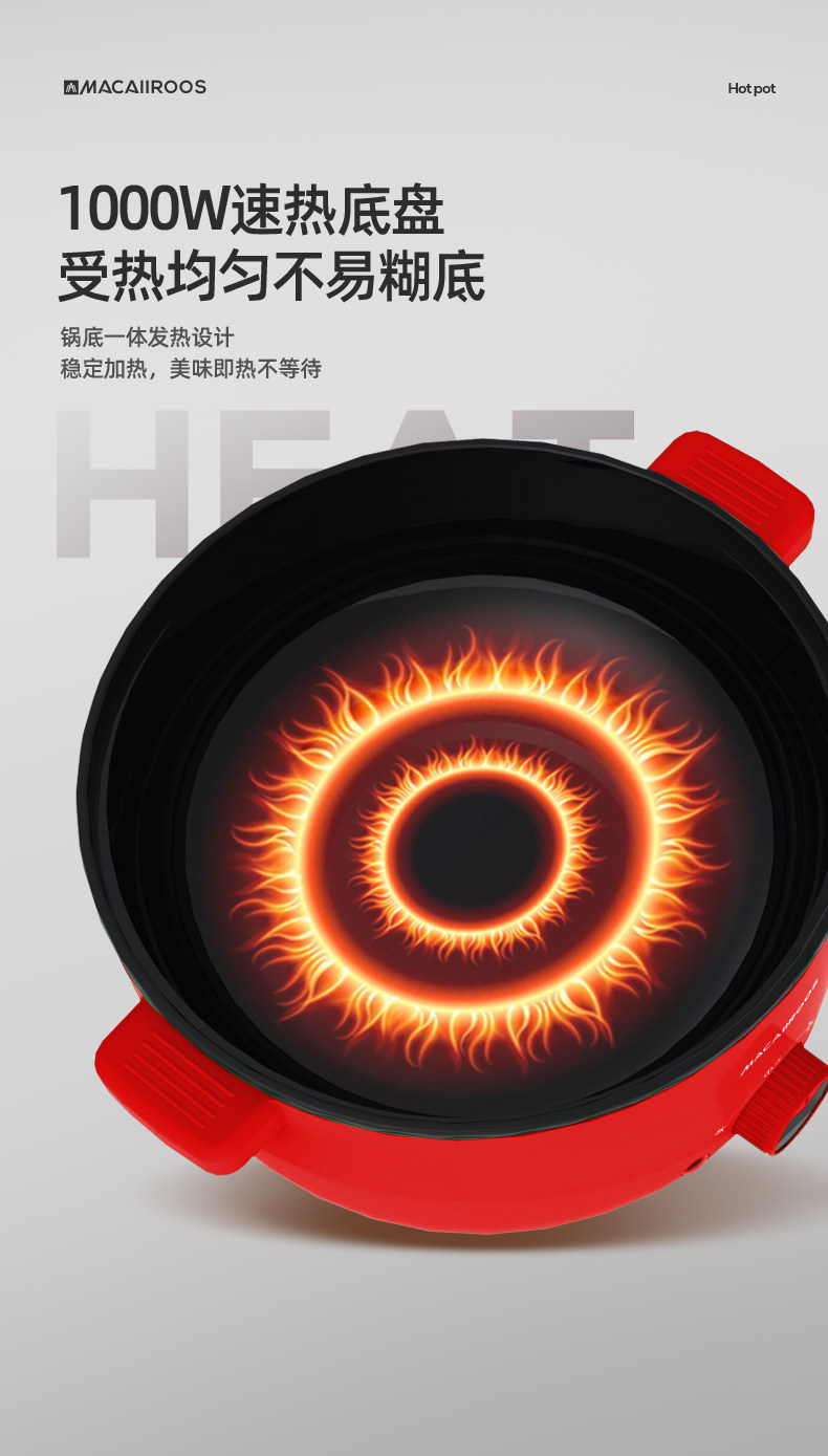 迈卡罗电火锅电炒锅多功能锅火锅专用锅家用电煮锅电煮炖锅