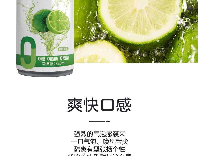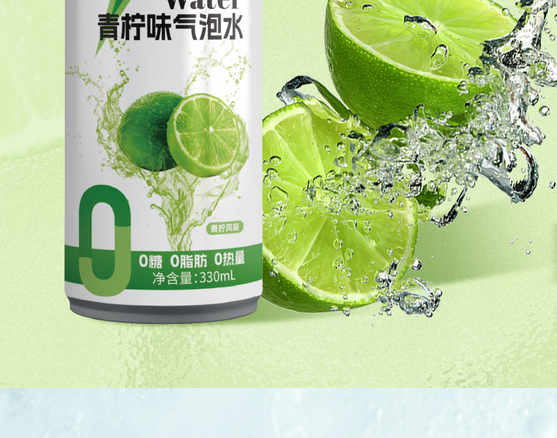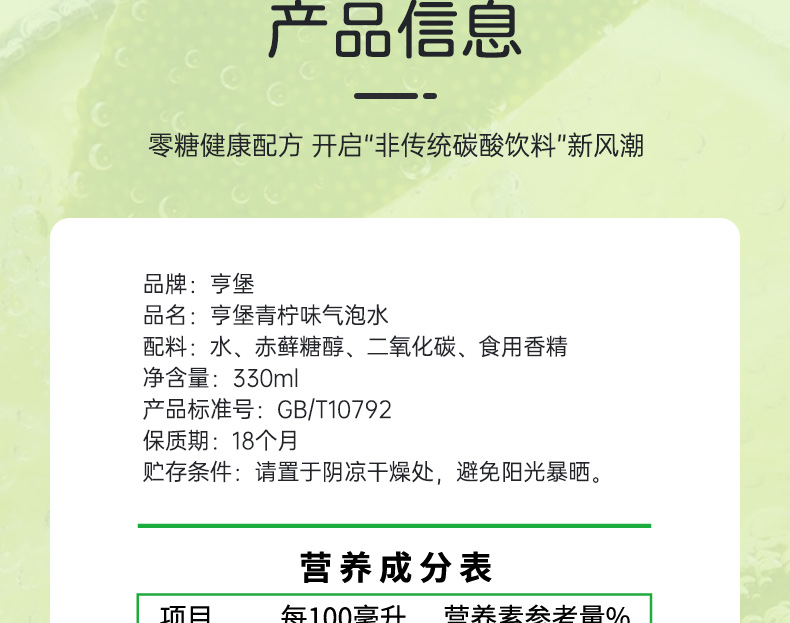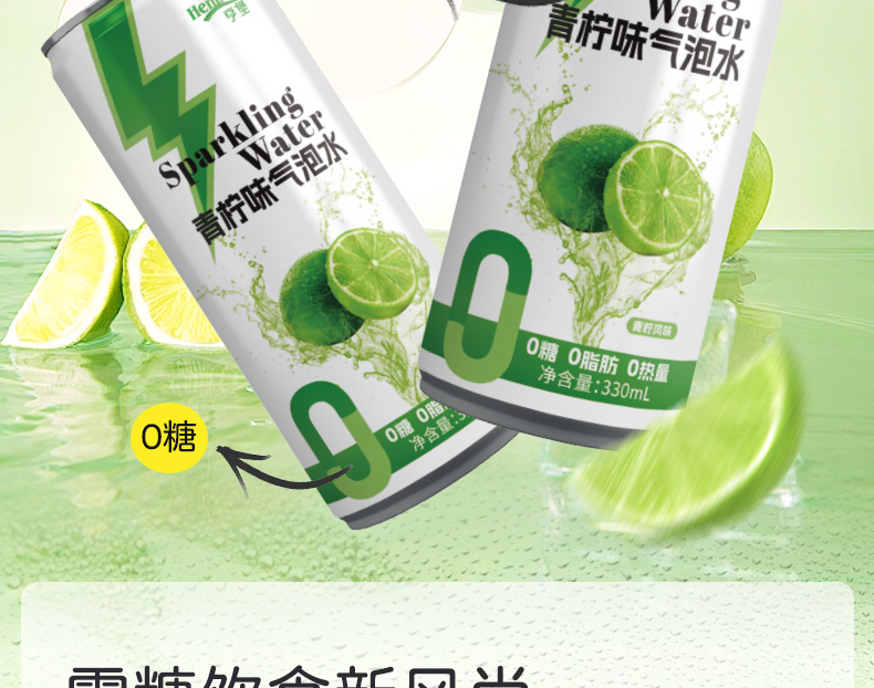 亨堡 青柠味苏打气泡水 0糖0卡0脂 330ml * 24罐