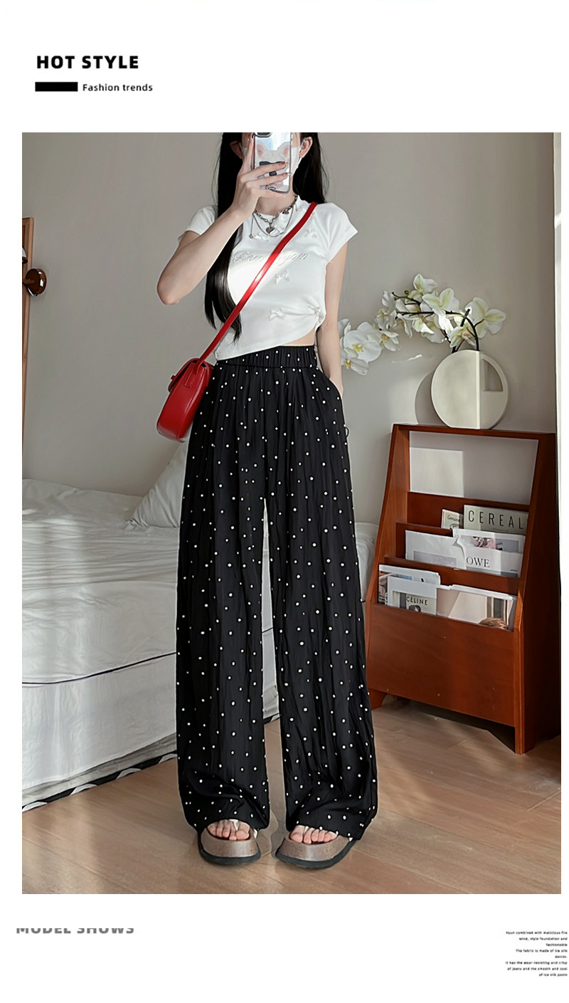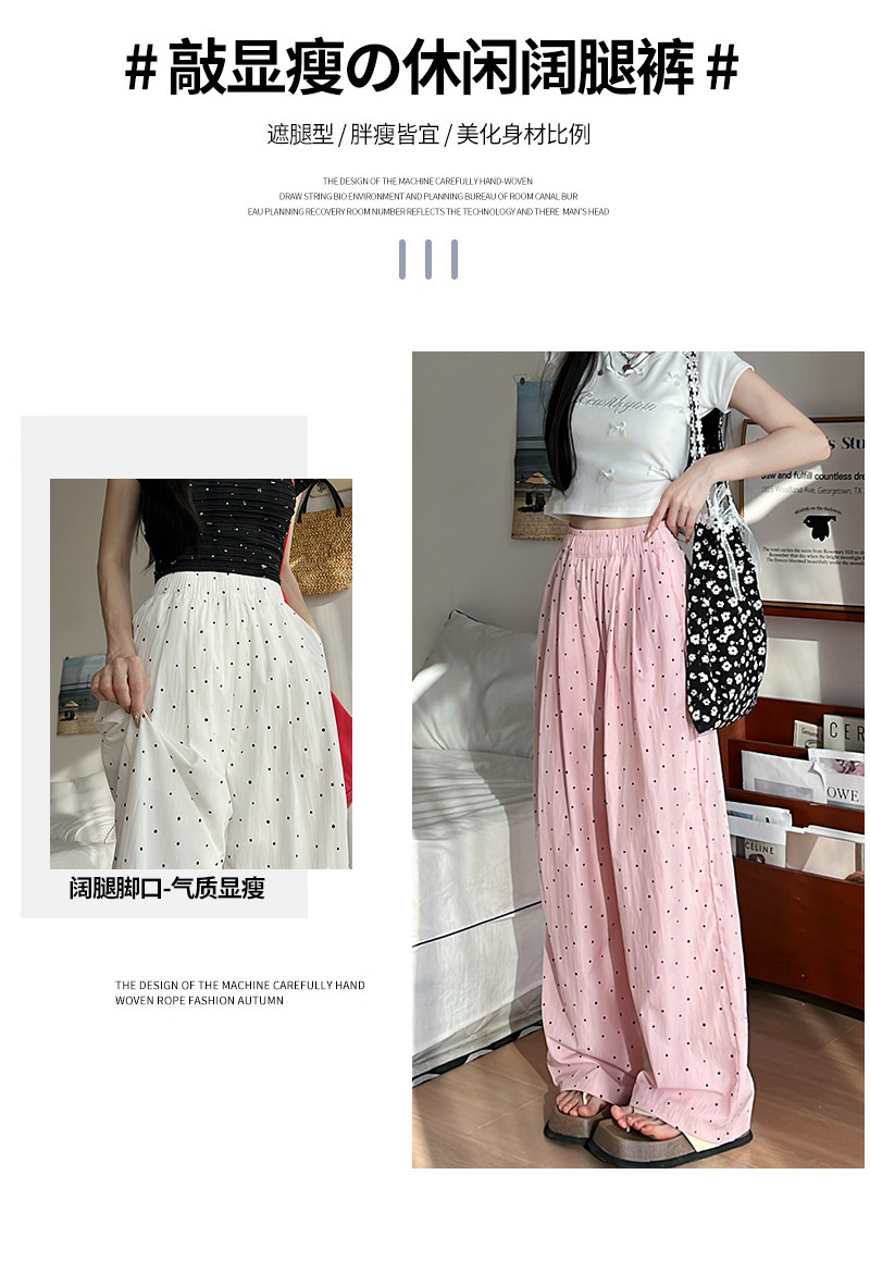 山本裤休闲风波点裤慵懒裤通勤裤薄裤高腰垂感小个子