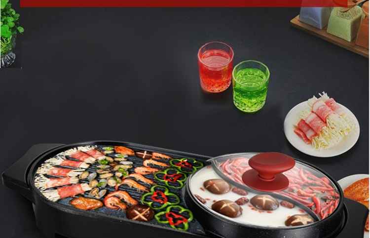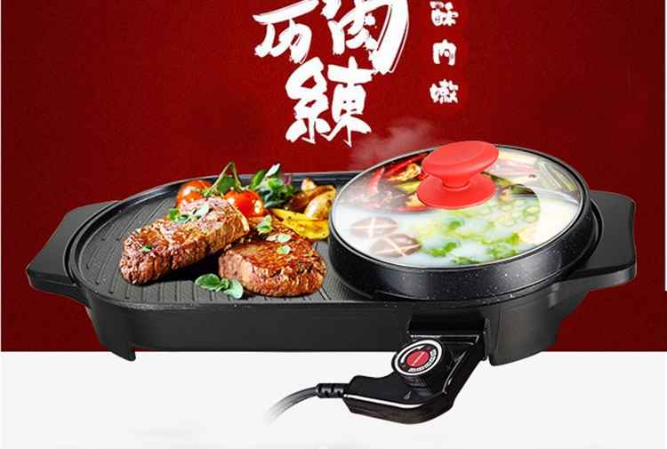 【涮烤一体 少油轻烟】都市太太 年年有余多功能家用涮烤锅电火锅多功能烤盘电烧烤炉 多功能鸳鸯电火锅 家用无烟电烤炉电烤盘 烤涮一体锅