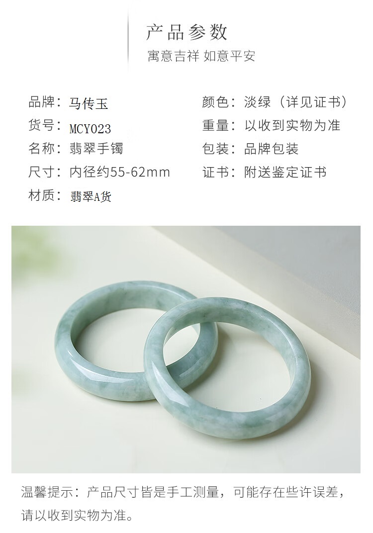 马传玉翡翠手镯MCY023淡绿色【每品一证】】