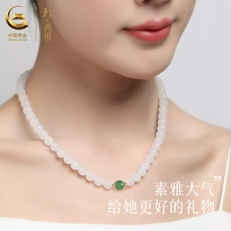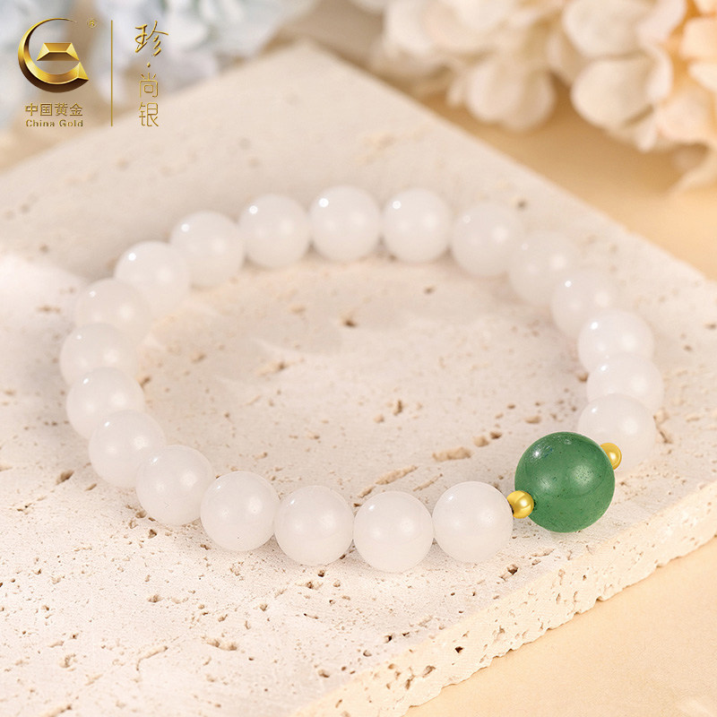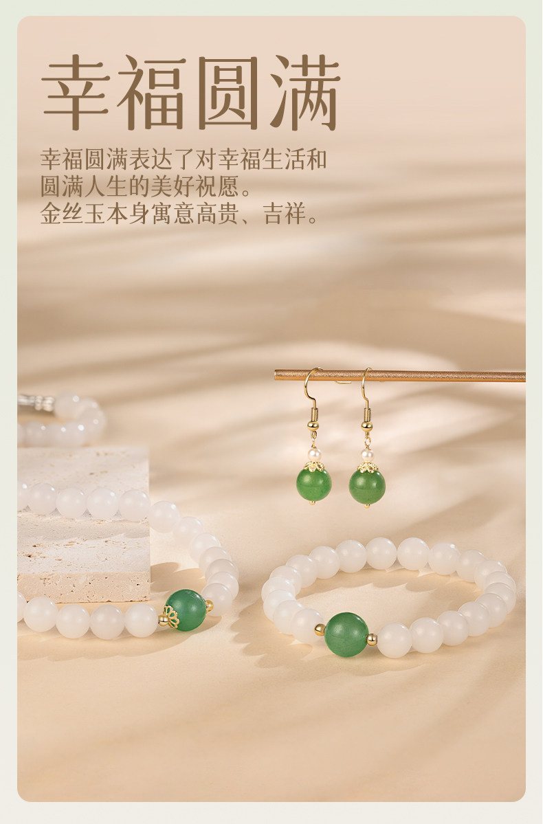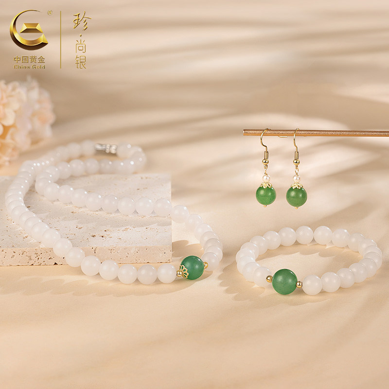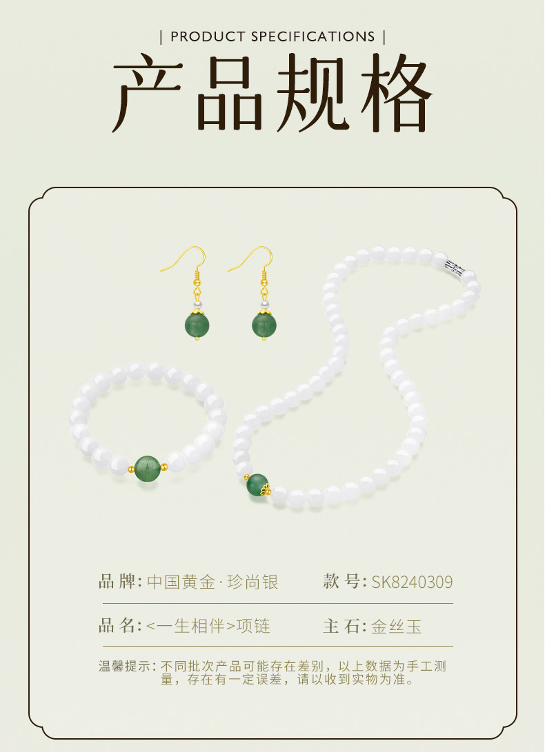 中国黄金珍尚银金丝玉三件套幸福圆满项链手串耳饰礼盒套装SK8240309