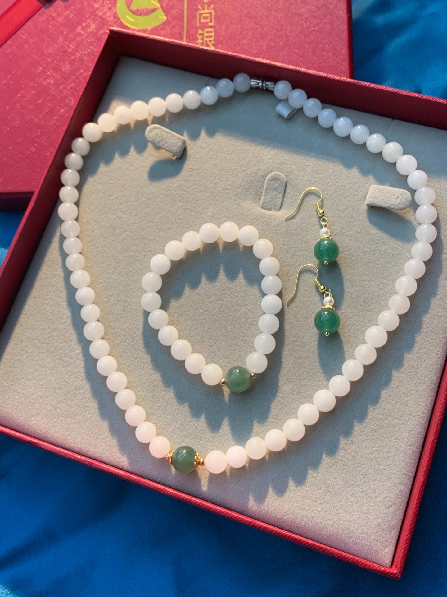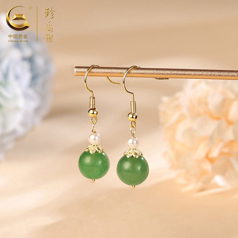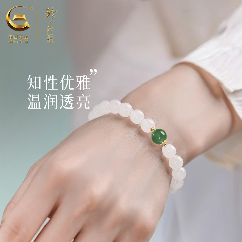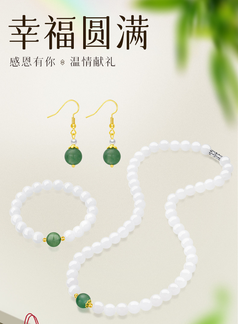 中国黄金珍尚银金丝玉三件套幸福圆满项链手串耳饰礼盒套装SK8240309