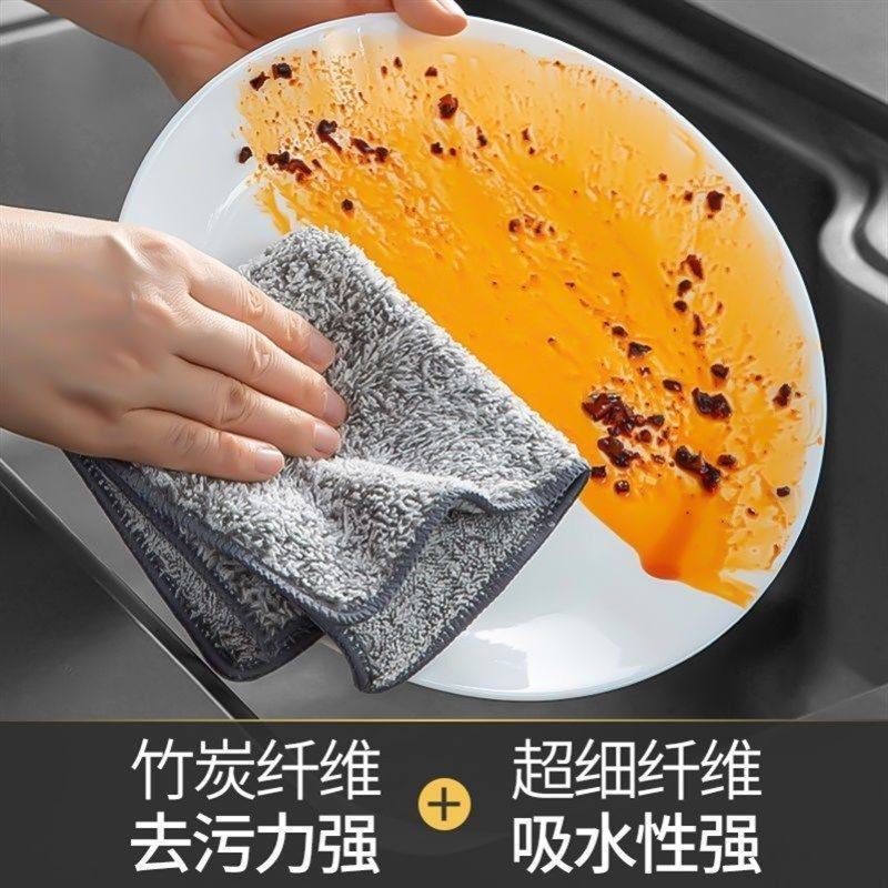 【8条装】竹炭抹布清洁厨房不沾油去污加厚洗碗布擦桌子吸水去油易清洗麻布