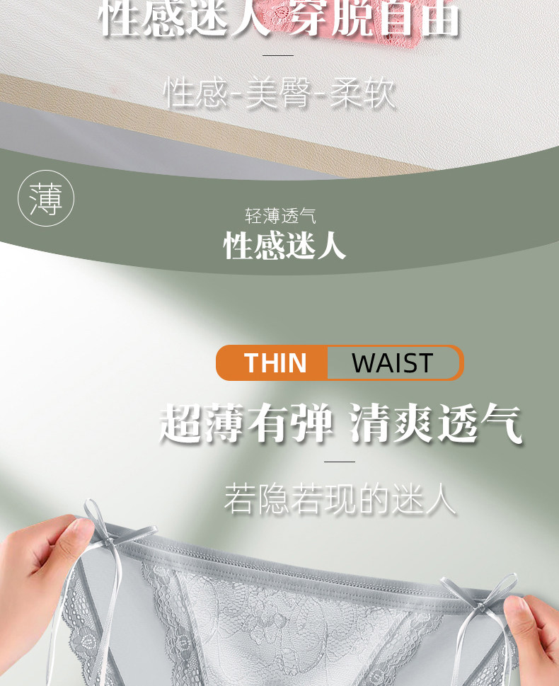 【4条装】福满潮歌 轻薄无痕低腰性感三角裤棉裆内裤女内裤