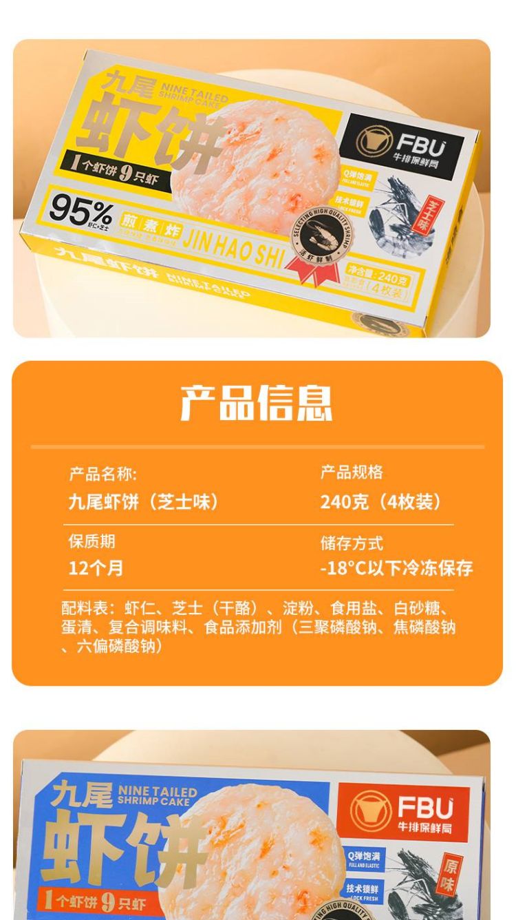 FBU牛排保鲜局九尾虾饼720g【虾饼原味240g+虾饼咸蛋黄味240g+虾饼芝士味240g】多个口味