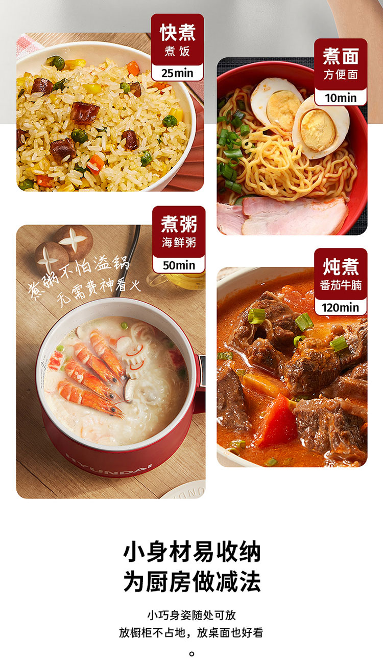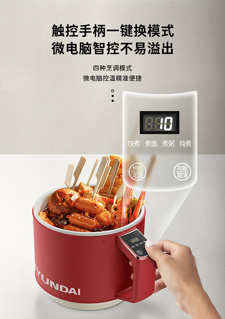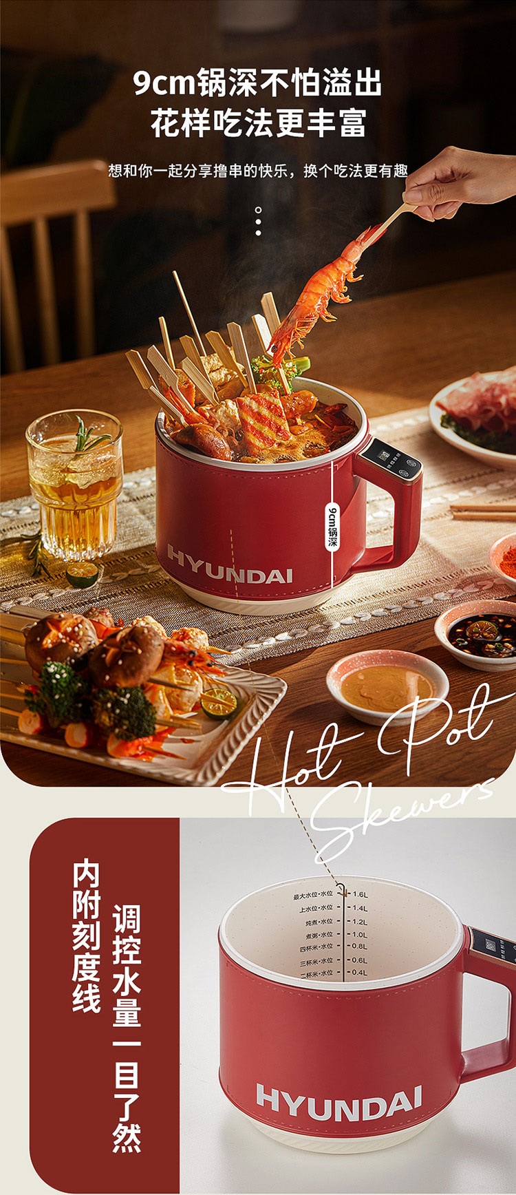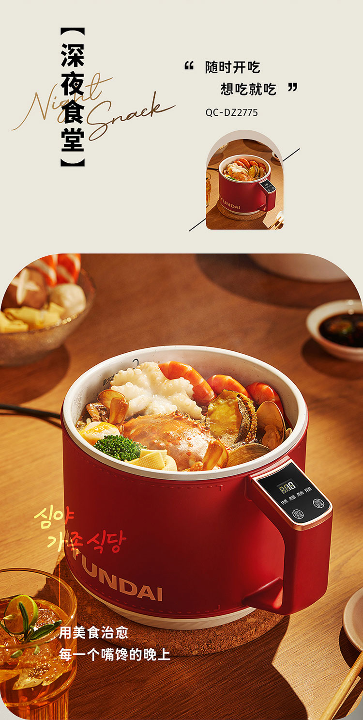 HYUNDAI韩国现代多功能电煮锅小电锅宿舍寝室小煮锅学生泡面锅多功能电火锅蒸煮一体迷你一人单人用电煮锅【快煮+煮面+煮粥+炖煮+预约+定温】QC-DZ2775