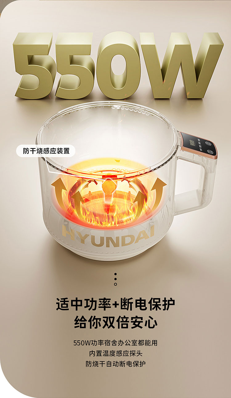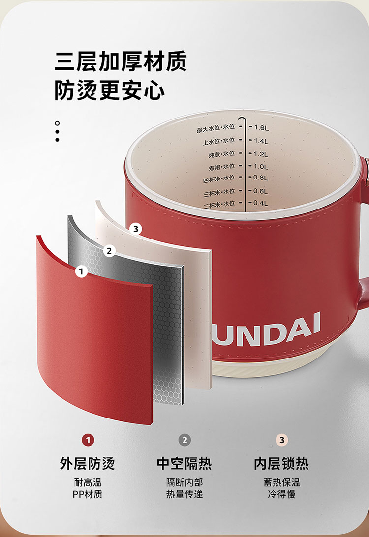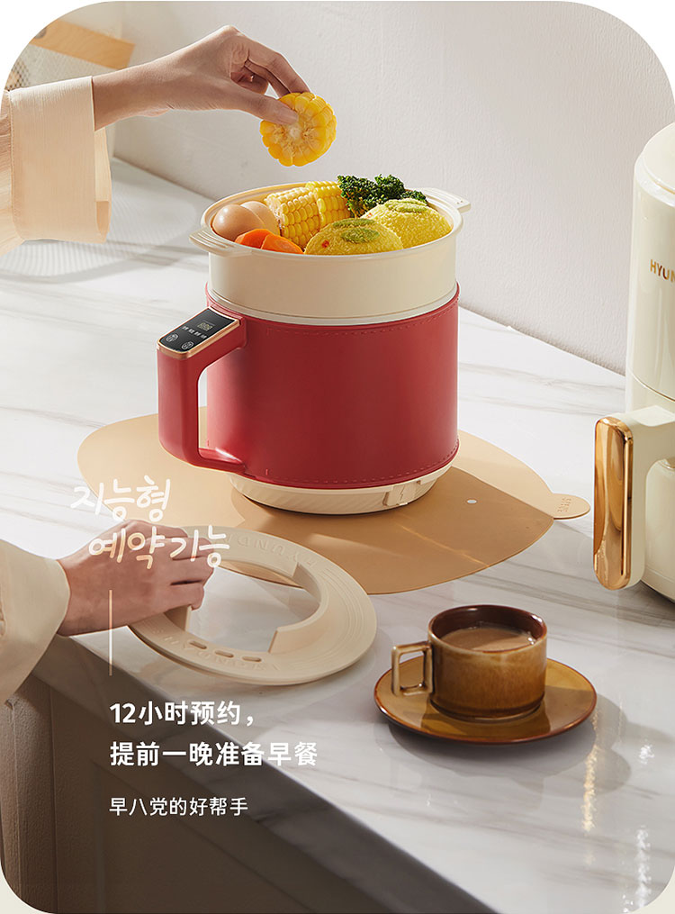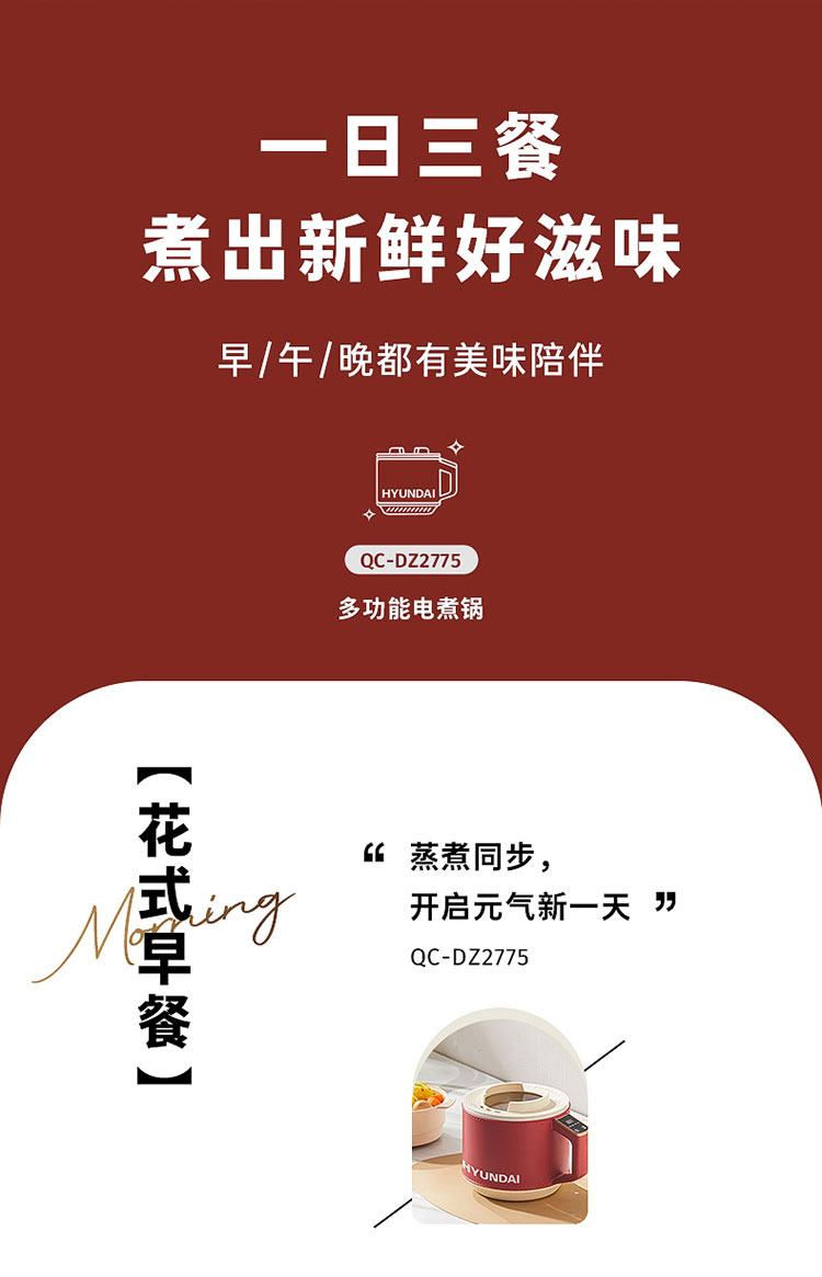 HYUNDAI韩国现代多功能电煮锅小电锅宿舍寝室小煮锅学生泡面锅多功能电火锅蒸煮一体迷你一人单人用电煮锅【快煮+煮面+煮粥+炖煮+预约+定温】QC-DZ2775