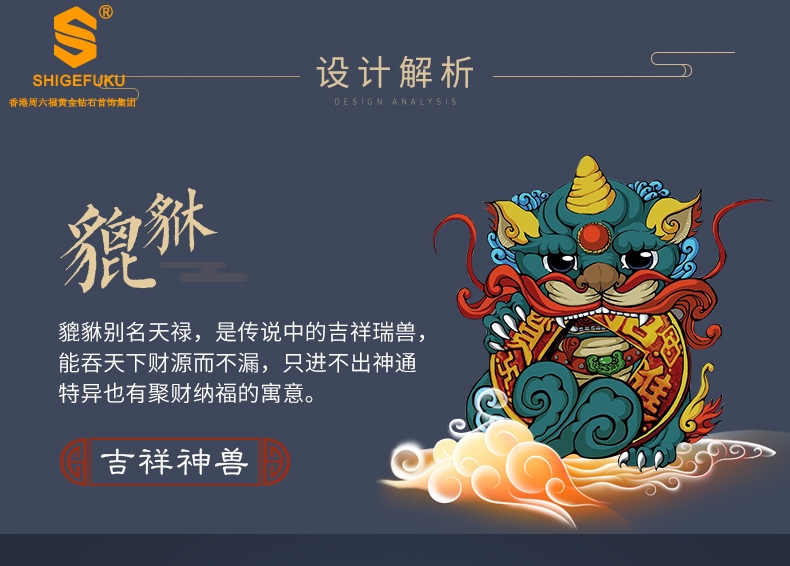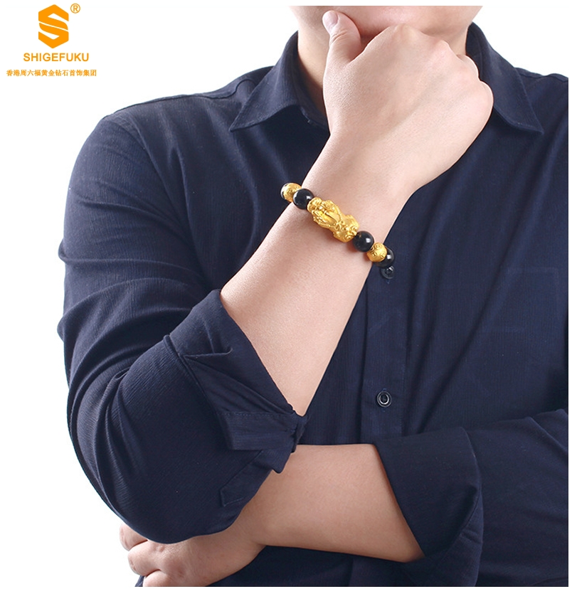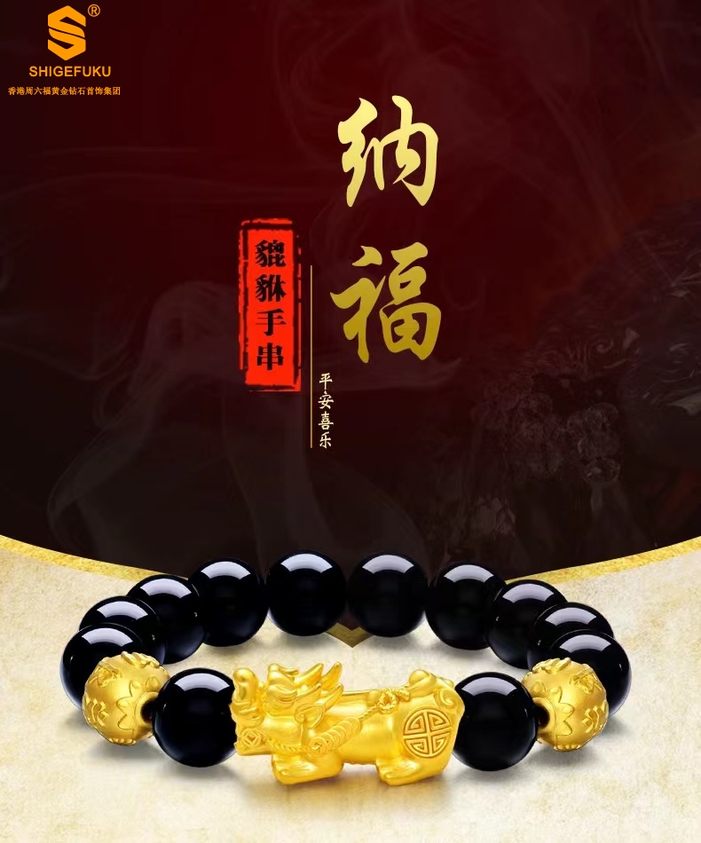 香港周六福黄金钻石首饰公司【SHIGEFUKU】每品一证合金镀金招财纳福貔貅转运手串HKZJ12544006有珠款均码