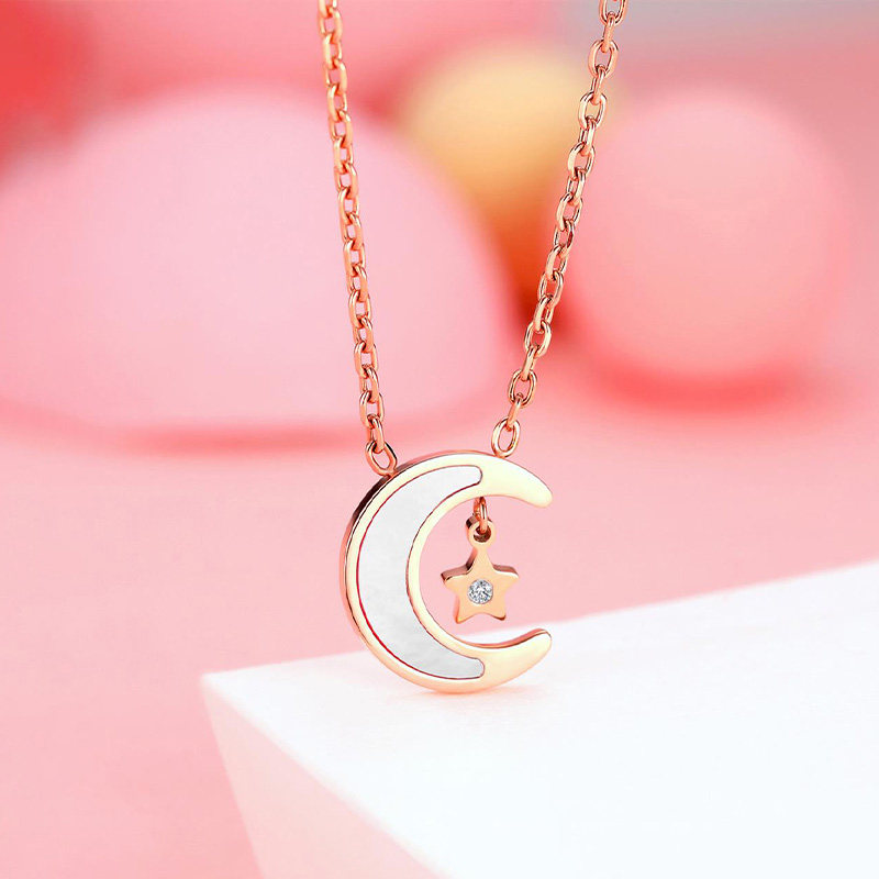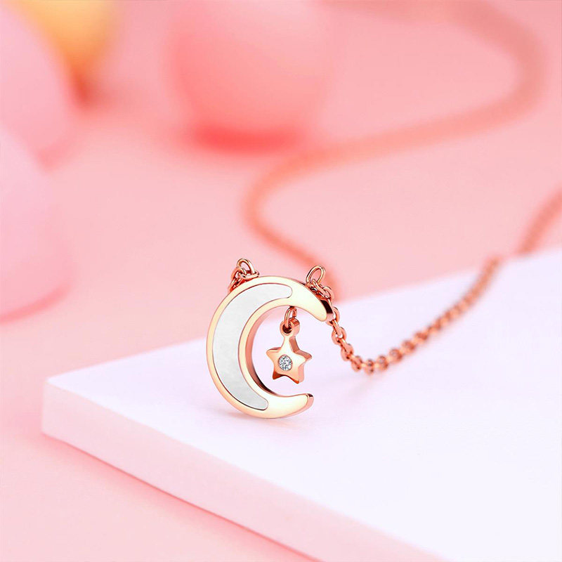 中国黄金珍尚银钻石轻奢星月神话白贝母项链ZSYC00382