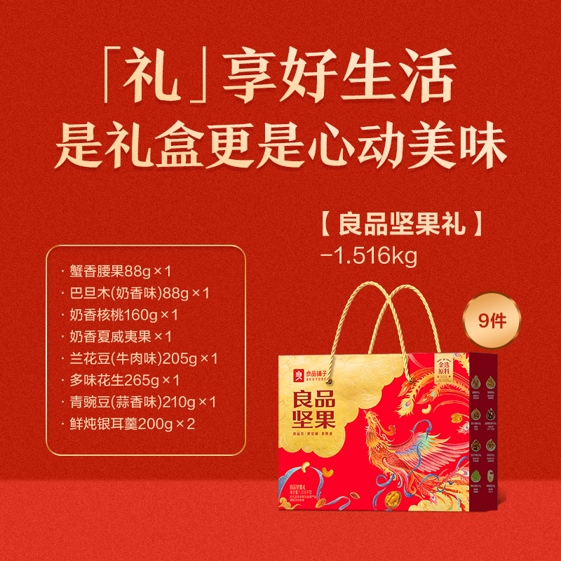 良品铺子 干果礼盒每日坚果炒货休闲零食大礼包员工福利春节中秋福利 精美彩盒装 【良品坚果礼】1.516KG