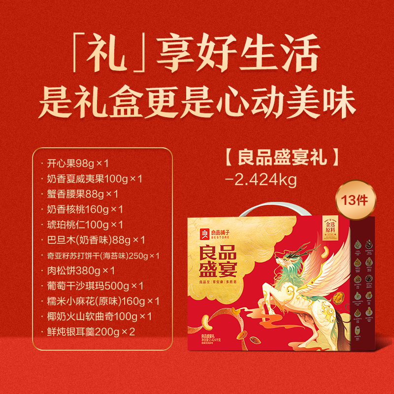 良品铺子干果礼盒每日坚果炒货休闲零食大礼包员工福利 【 良品盛宴礼】 精美彩盒装2.424kg