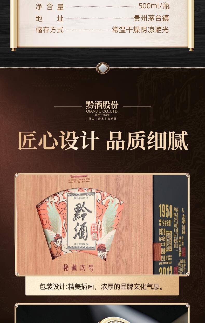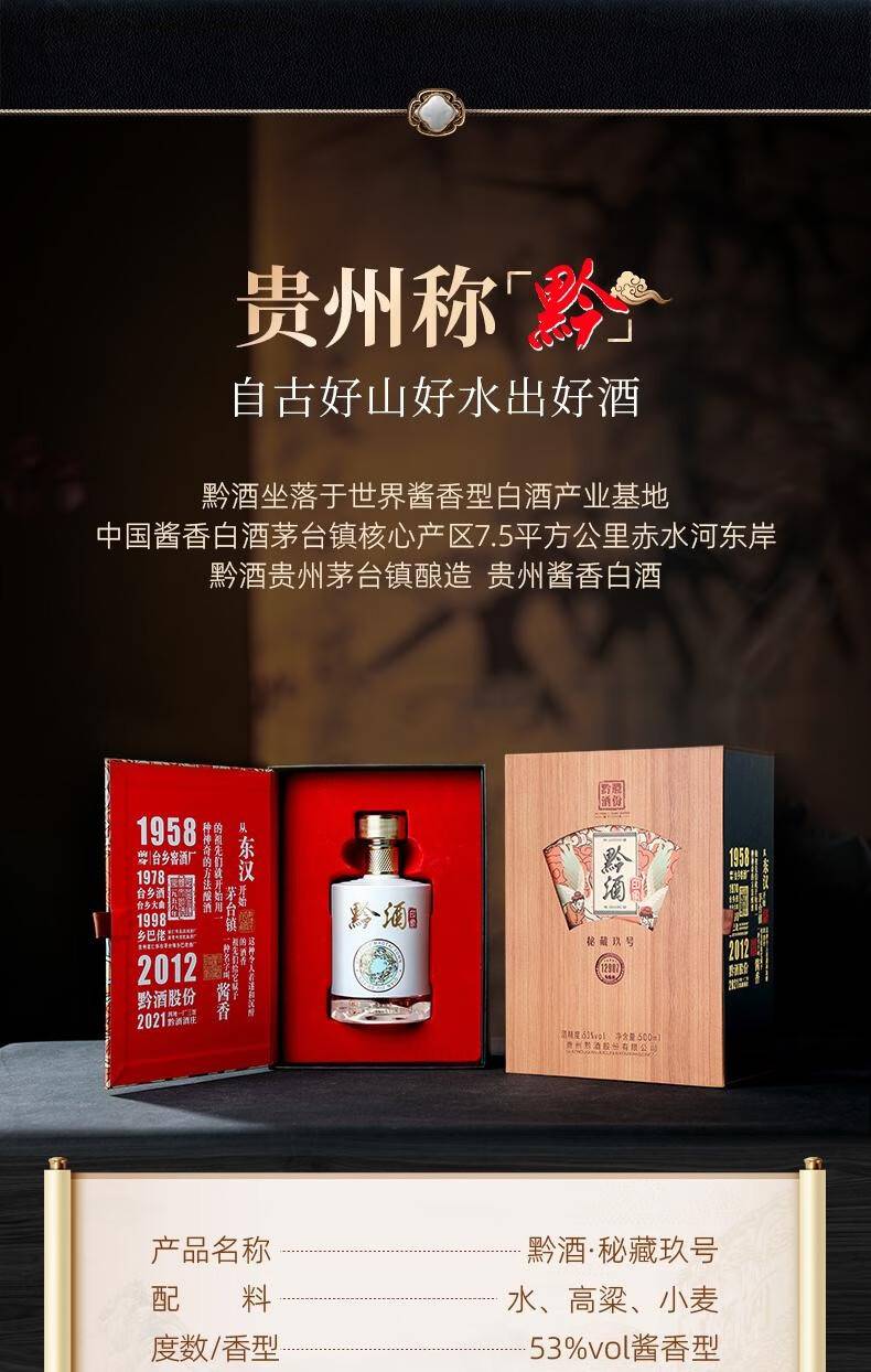 黔酒印象 秘藏玖号 53度 酱香型白酒 纯粮优级 500ml*4瓶 整箱
