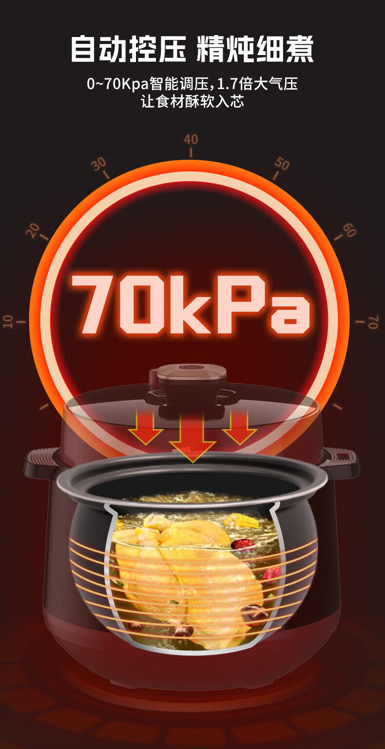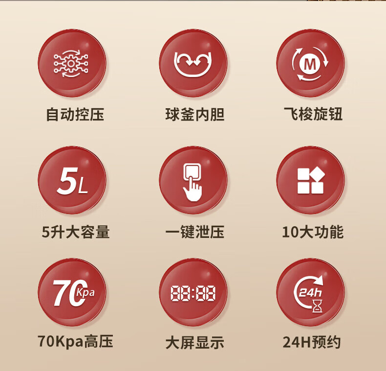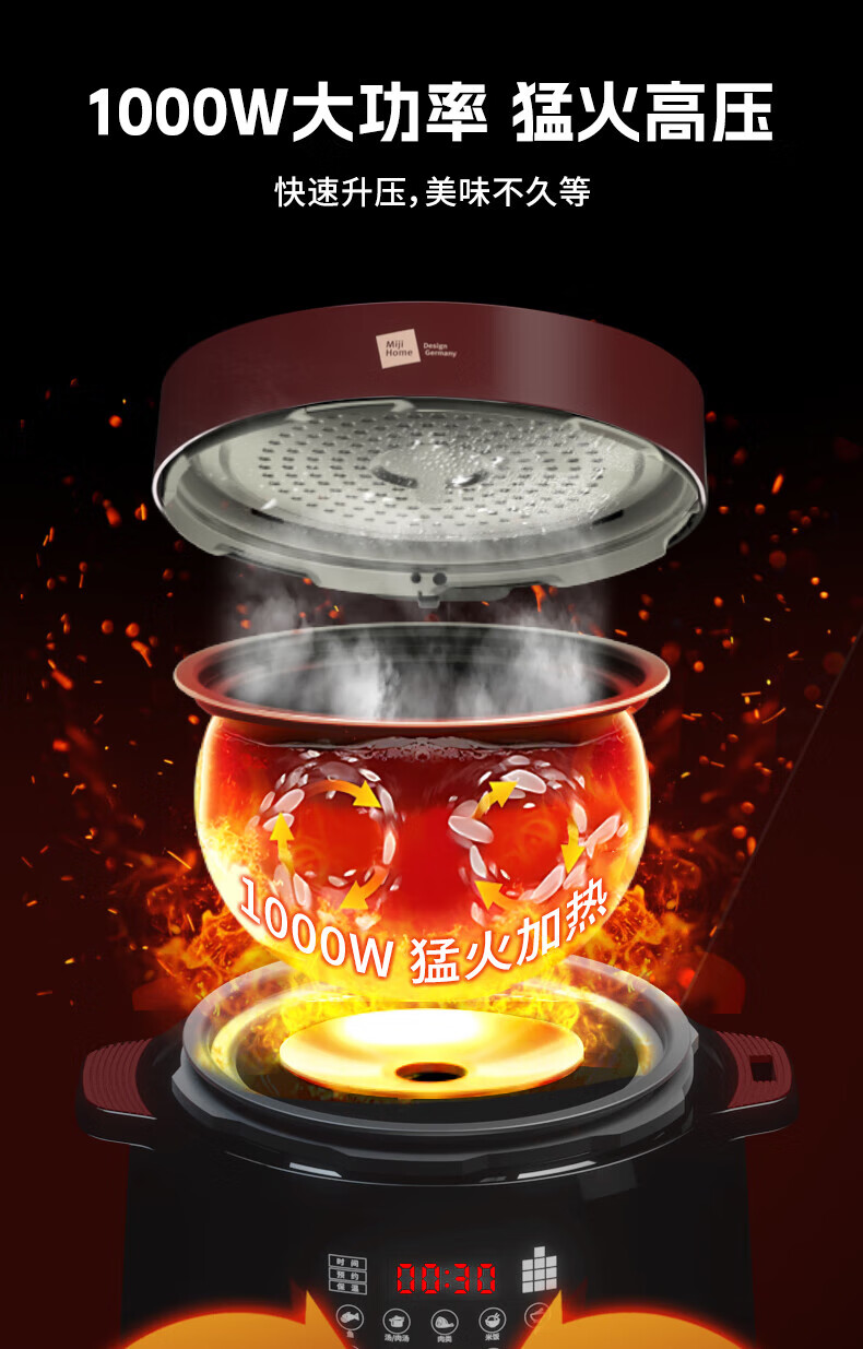 米技 电压力锅5L大容量家用多功能PC-L5013 高压锅煲汤 红色