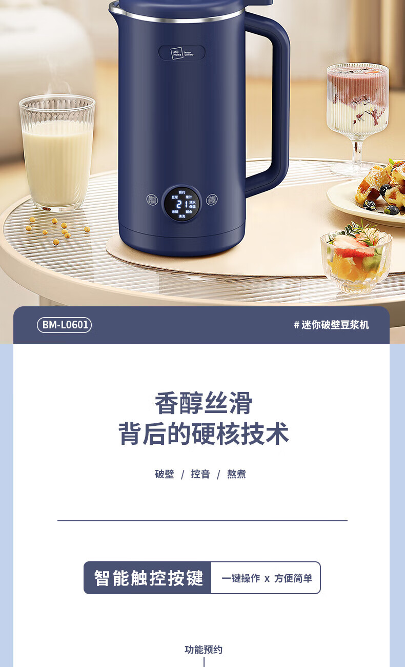 米技豆浆机迷你破壁机家用智能小型800ml精致容量BM-L0601【预约保温】
