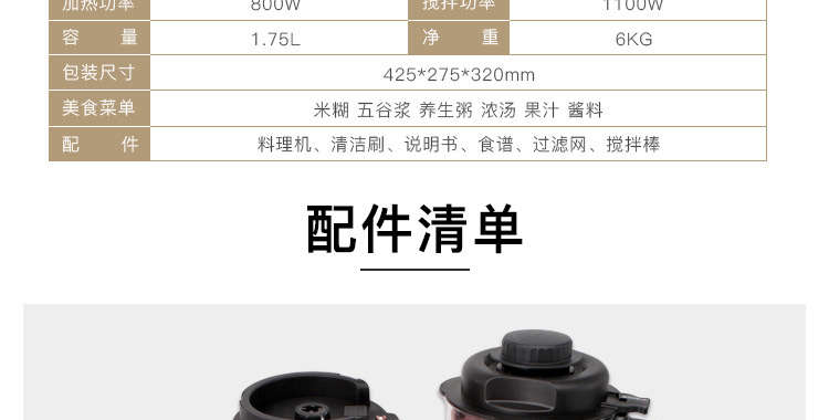 德国德郎士 多功能加热破壁机家用料理机 新款型号YM-688 大功率1100W 1.75L