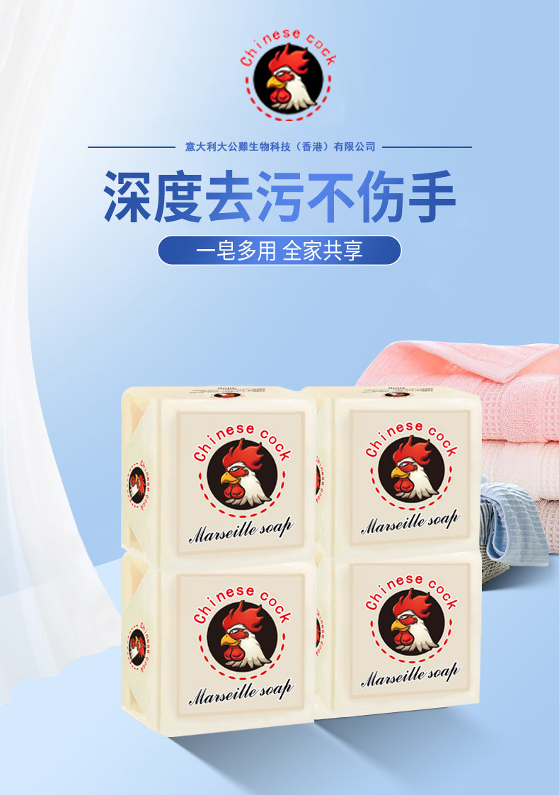 草之浴深化大公鸡马赛皂洗衣皂肥300g*3块 皂家用手洗内衣内裤除菌去污亲肤母婴适用