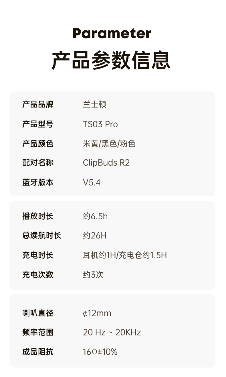 兰士顿时尚耳夹式蓝牙耳机ClipBuds R2 (TS03 PRO)