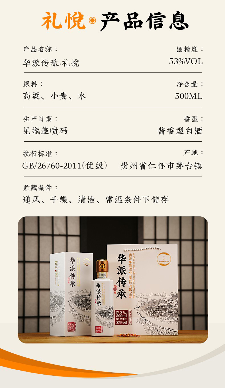 宴无忧华派传承-礼悦 53度 酱香型白酒 500mL*1瓶礼盒装