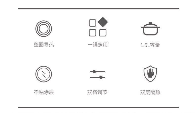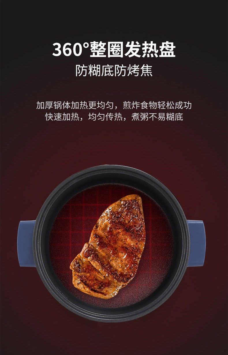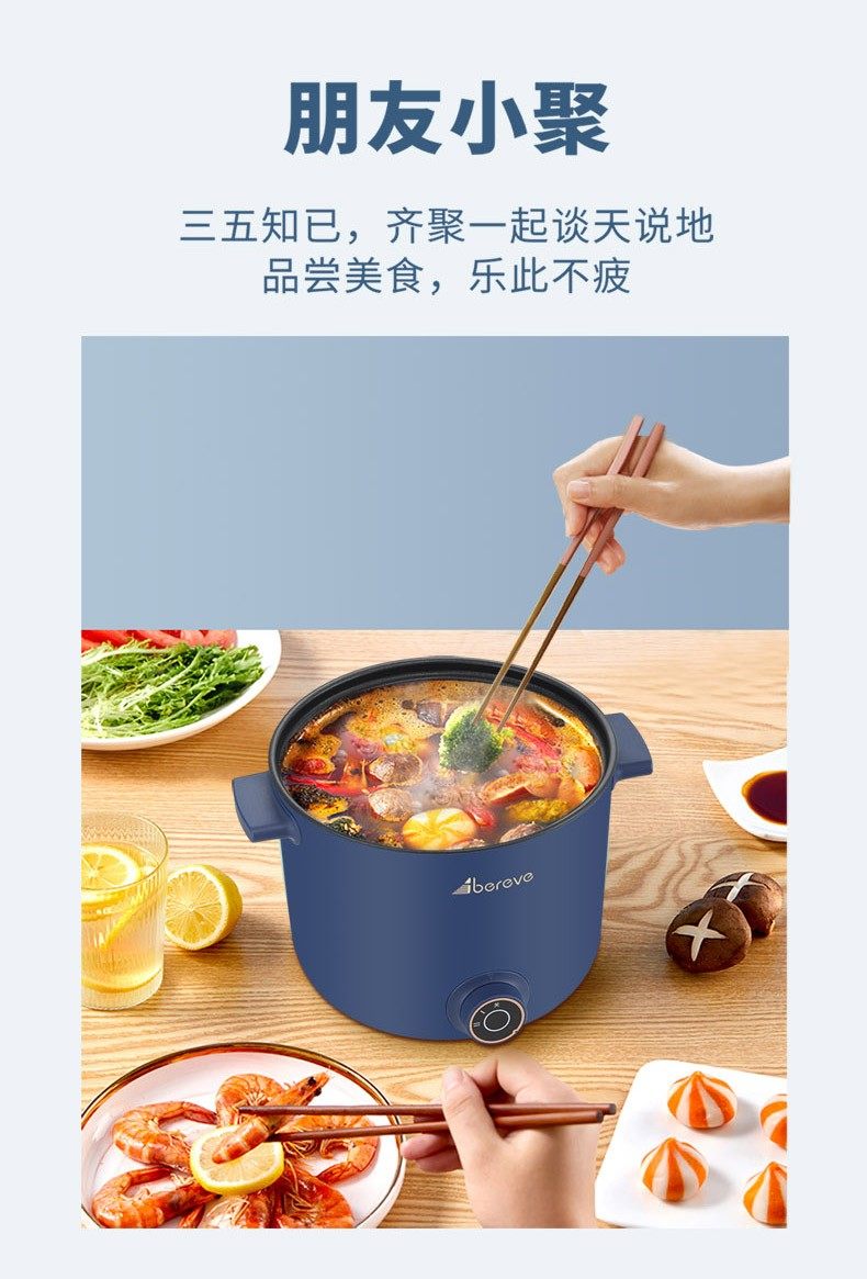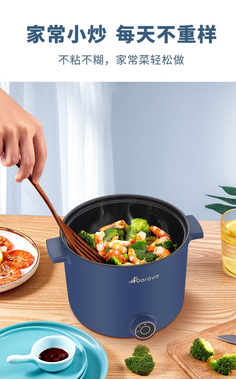艾贝丽电煮锅电煮锅600W电热锅多功能1.5L蒸煮煎炒一体电热锅宿舍学生煮面锅家用电器