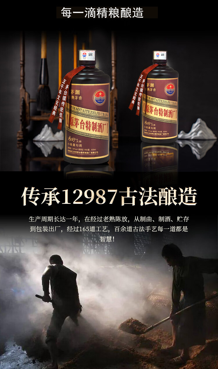 【整箱6瓶】酱之春原茅台特制酒厂茅渊经典茅香53度酱香型白酒500ml*6瓶 纯粮食坤沙白酒送礼自饮