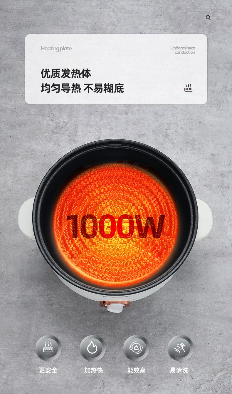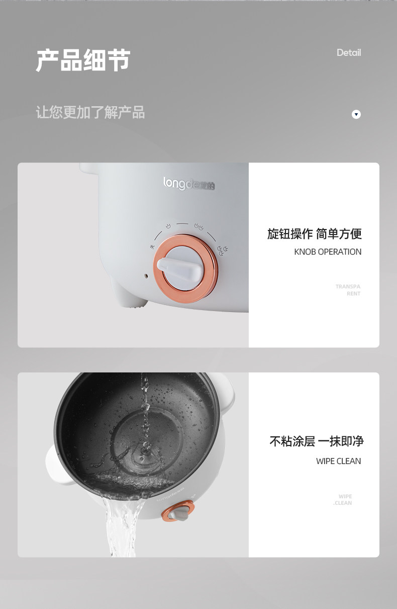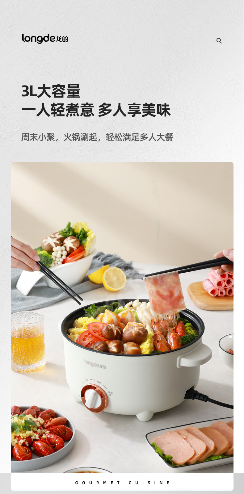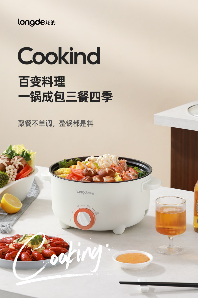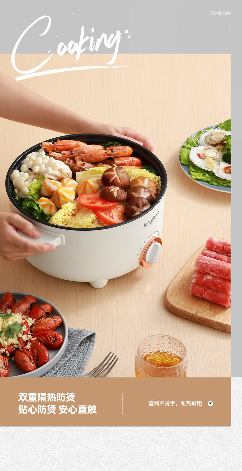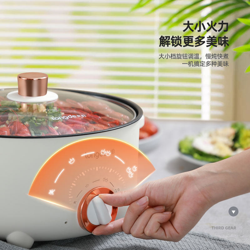 龙的电煮锅电炒锅多功能锅3L大容量电火锅不沾涂层电热锅能蒸能煮小电锅宿