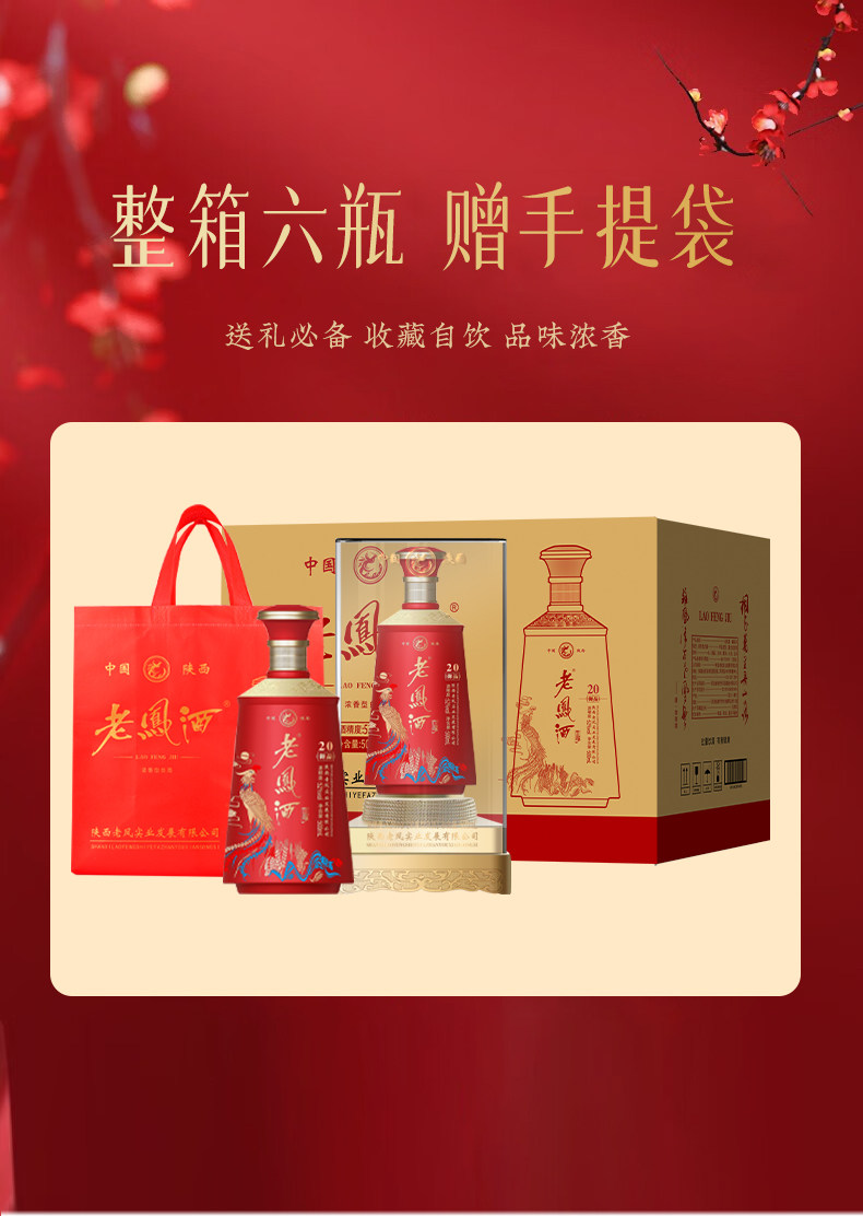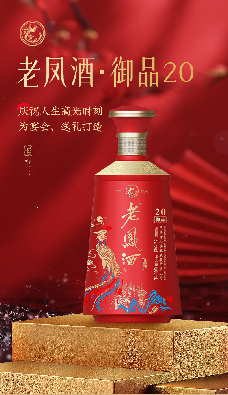 老凤酒御品20白酒500ml*6瓶 陕西原产52度浓香型酒水送礼宴请礼节拜访粮食酿造