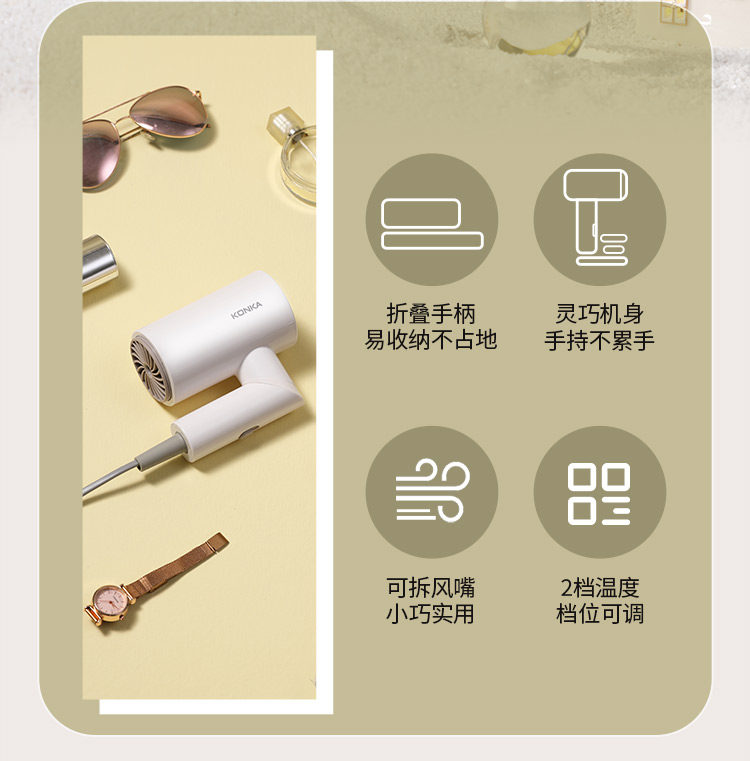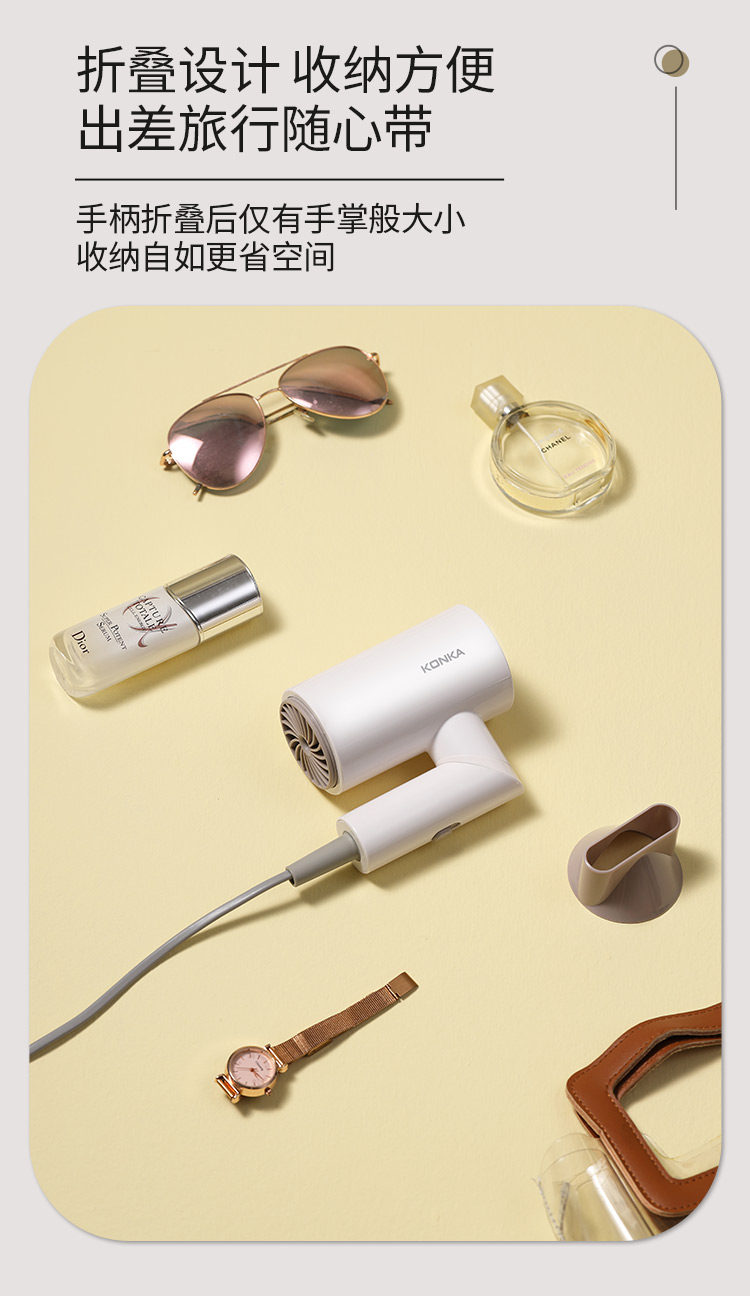 康佳吹风机便携式家用差旅可折叠护发大风力速干电吹风KGCF-1280