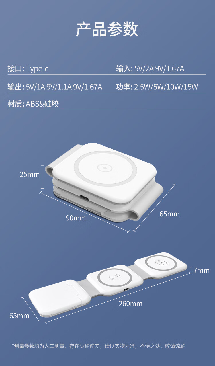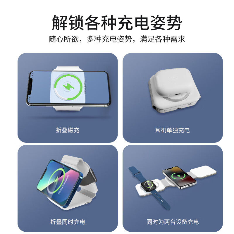 V-LOOK多功能无线充支架款BM3084 可折叠三合一无线充 外出旅行出差必备 支持Qi 标准无线充电器