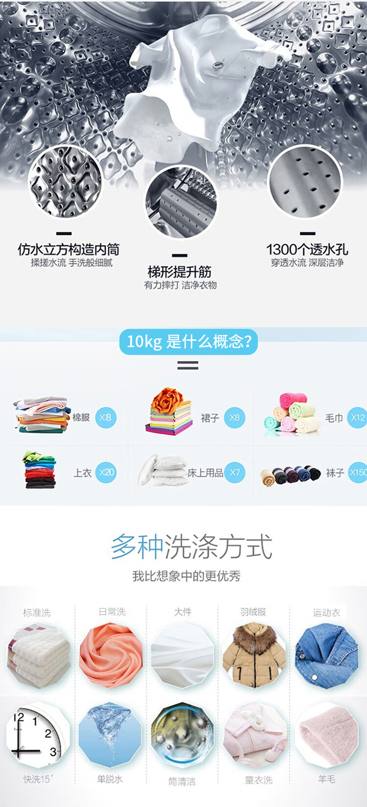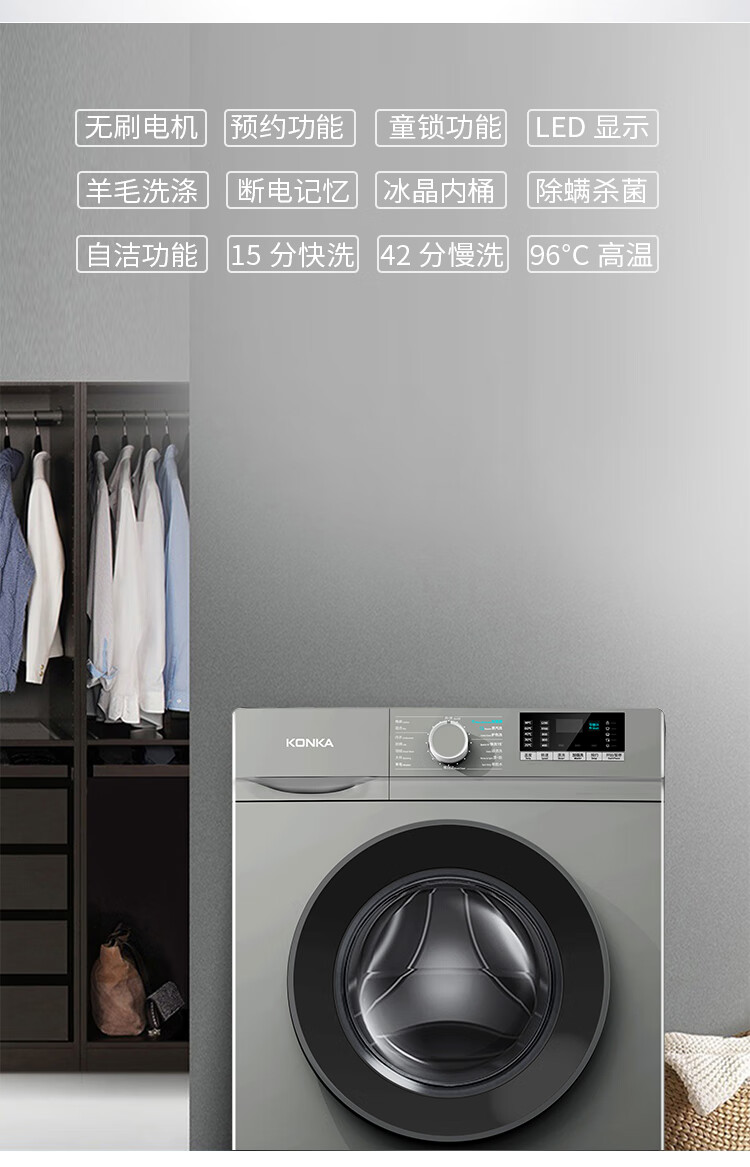 康佳 10kg洗衣机滚筒洗衣机一级能效智能变频家用洗衣机XQG100-BB001
