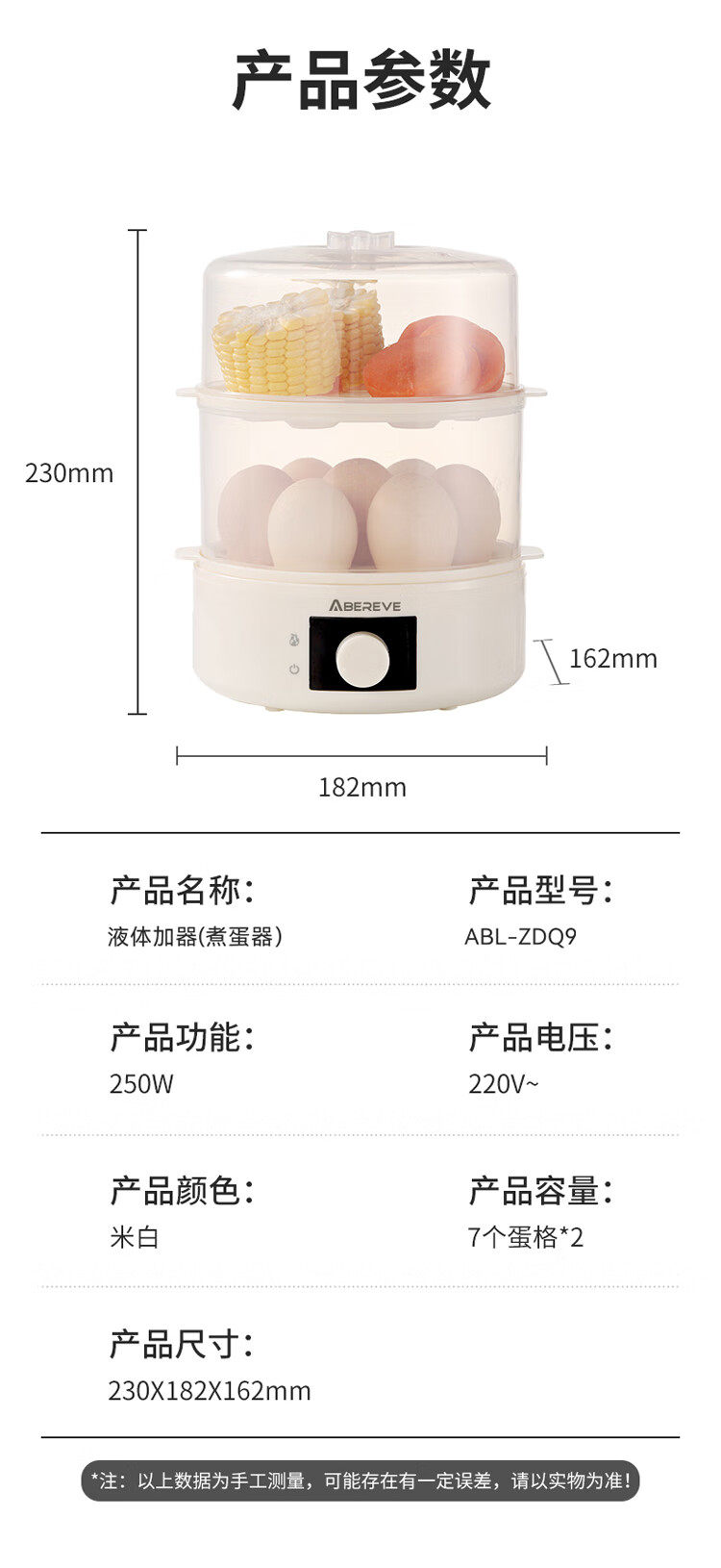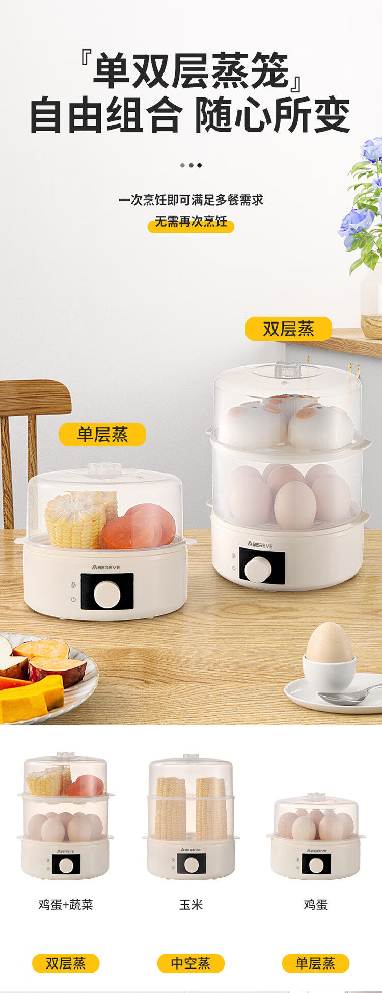 艾贝丽双层煮蛋器250W自动多功能蒸蛋家用宿舍断电小型蛋羹蒸锅煮蛋鸡蛋神器双层