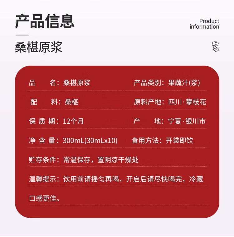【福东海】桑葚原浆300毫升(30ml*10)/盒FDH08010036