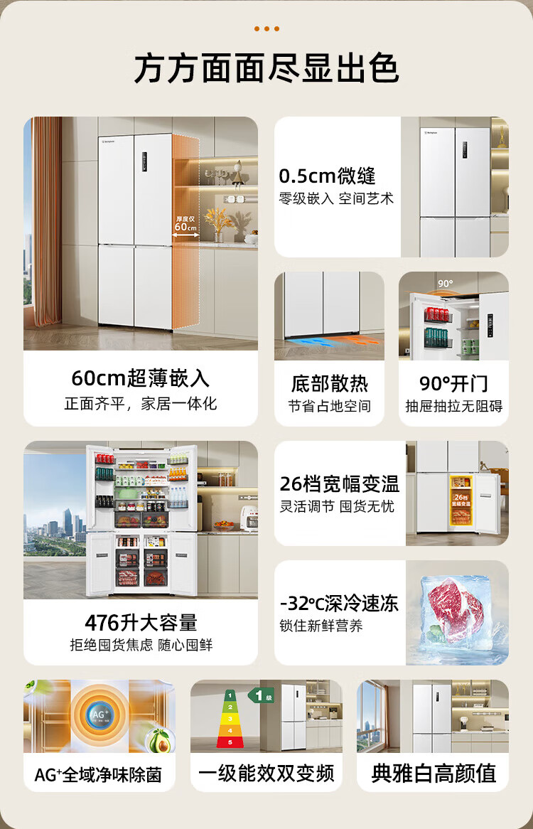 1、BCD-WF476G700W;2、典雅白BCD-WF476G700G典雅灰