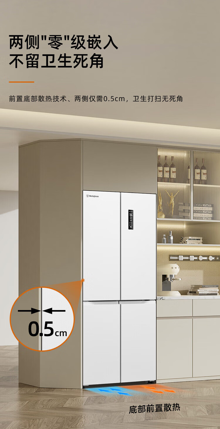 【西屋】60cm薄476升零嵌亲肤玻璃面板无指纹83l宽幅变温室-32度深冷速冻十字双开四开门超薄嵌风冷无霜一级变频电冰箱BCD-WF476G700W典雅白/WF476G700G典雅灰