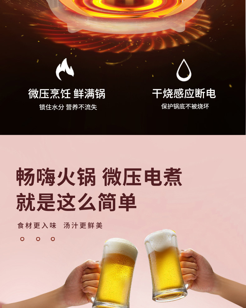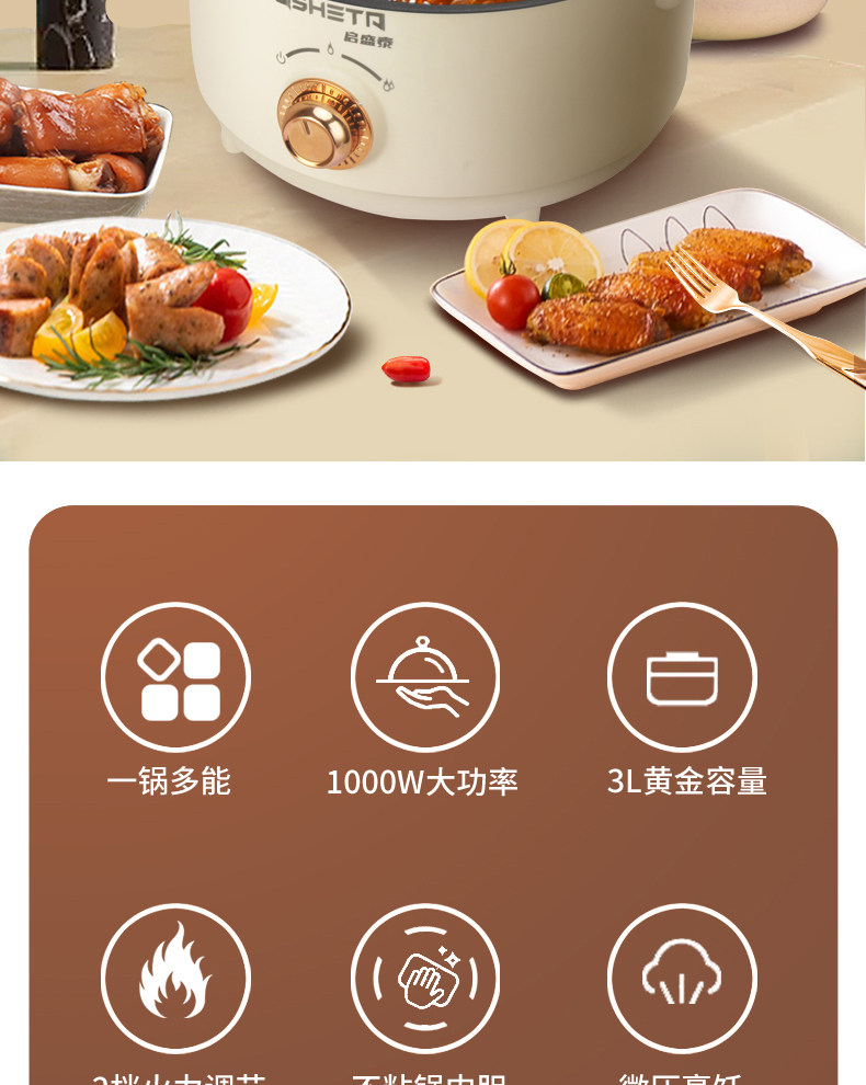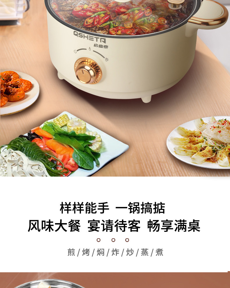 启盛泰微压锅学生宿舍电煮锅家用小电锅多功能蒸煮煎炒菜一体电热火锅