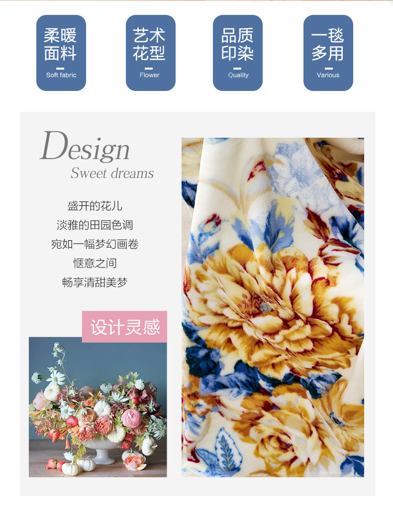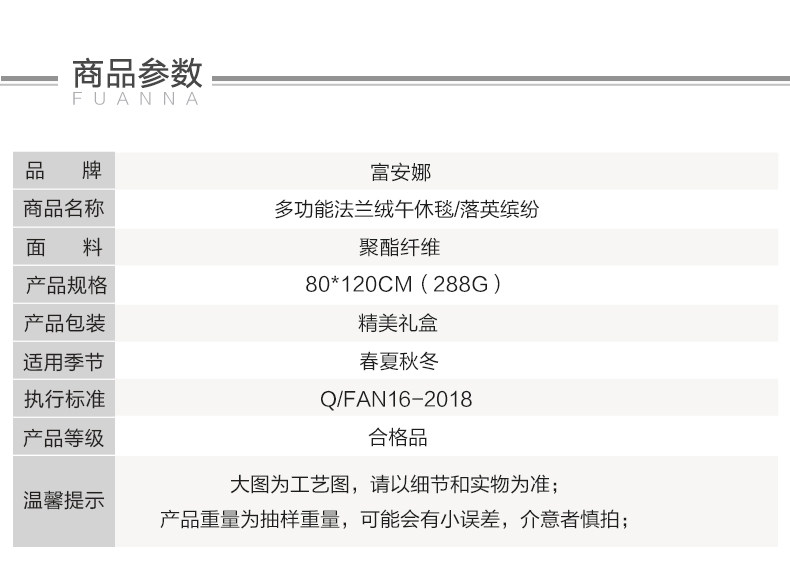 富安娜多功能法兰绒午休毯/落英缤纷80*120CM