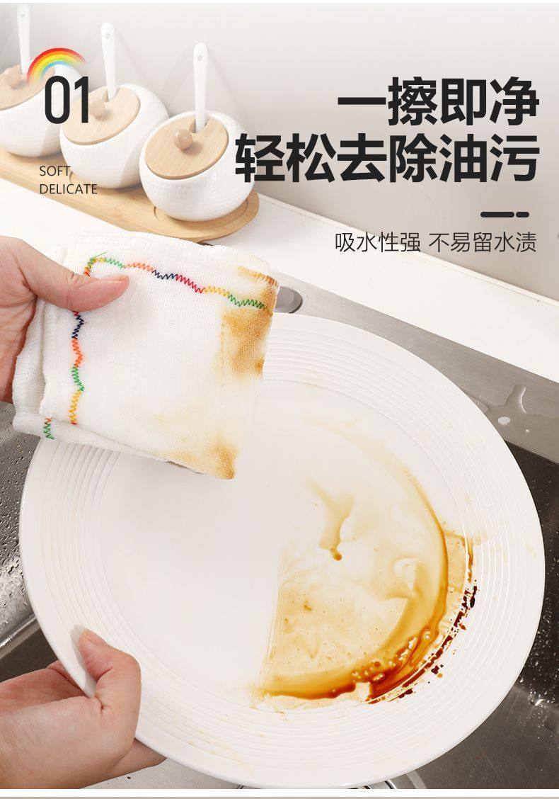 【5条装】QE 多层加厚加大彩虹疏油抹布厨房洗碗不掉毛不沾油易清洗抹布百洁布