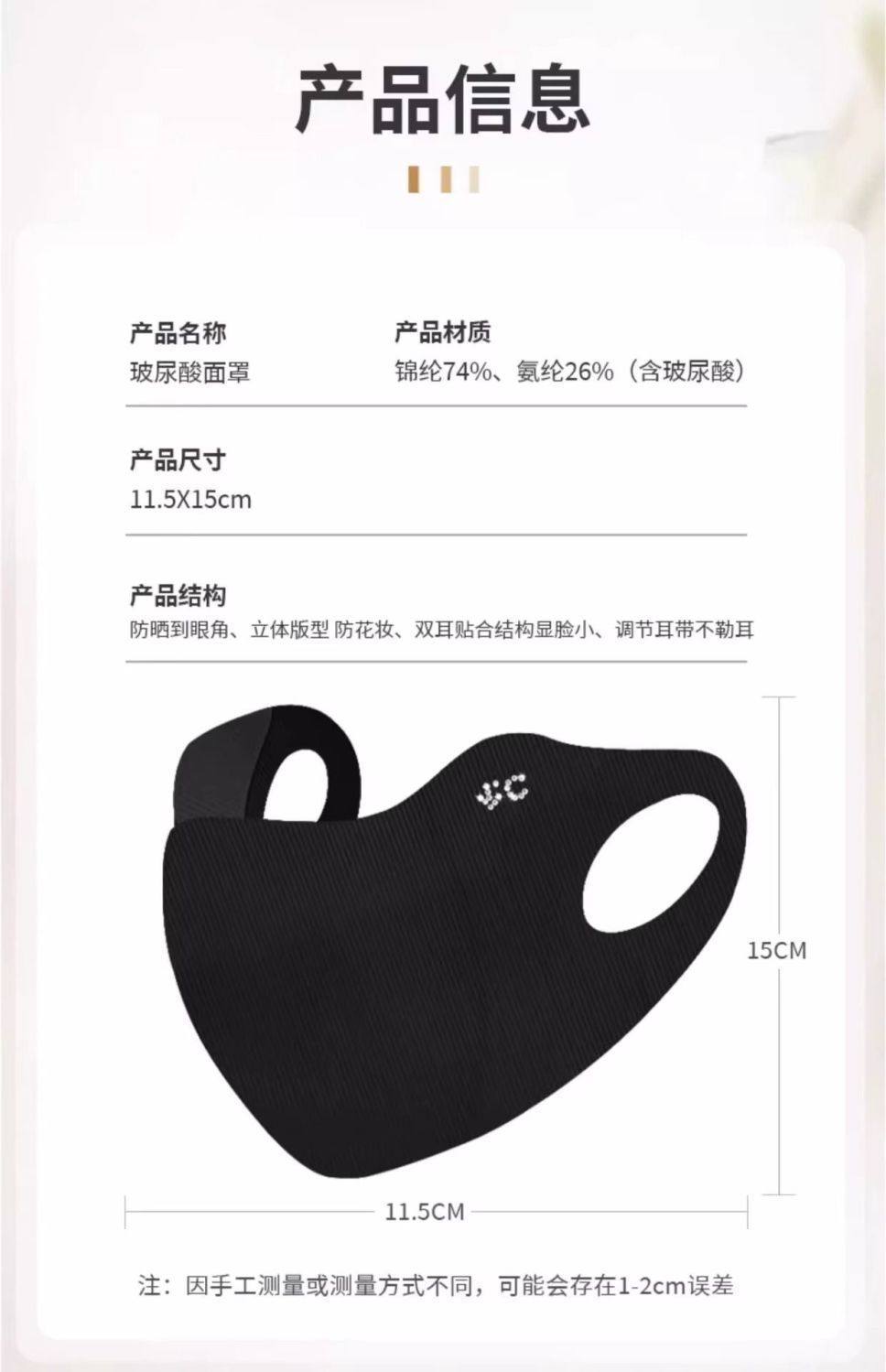 【2只装】可水洗时尚玻尿酸美颜口罩春季款防护ins抗衰老3D百搭透气保湿