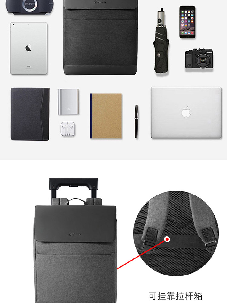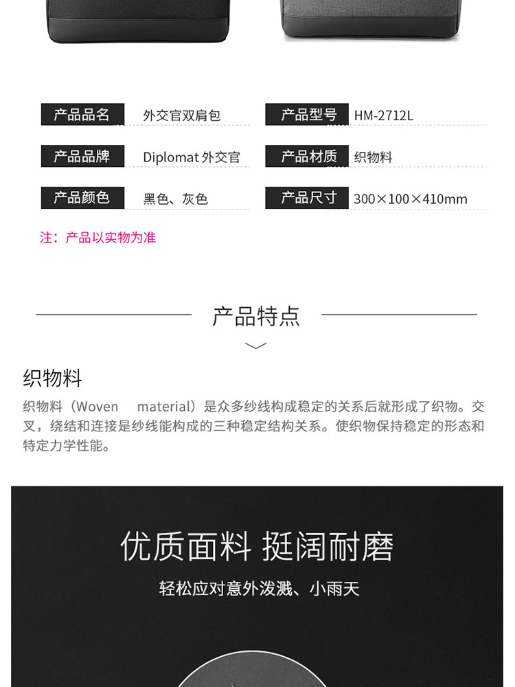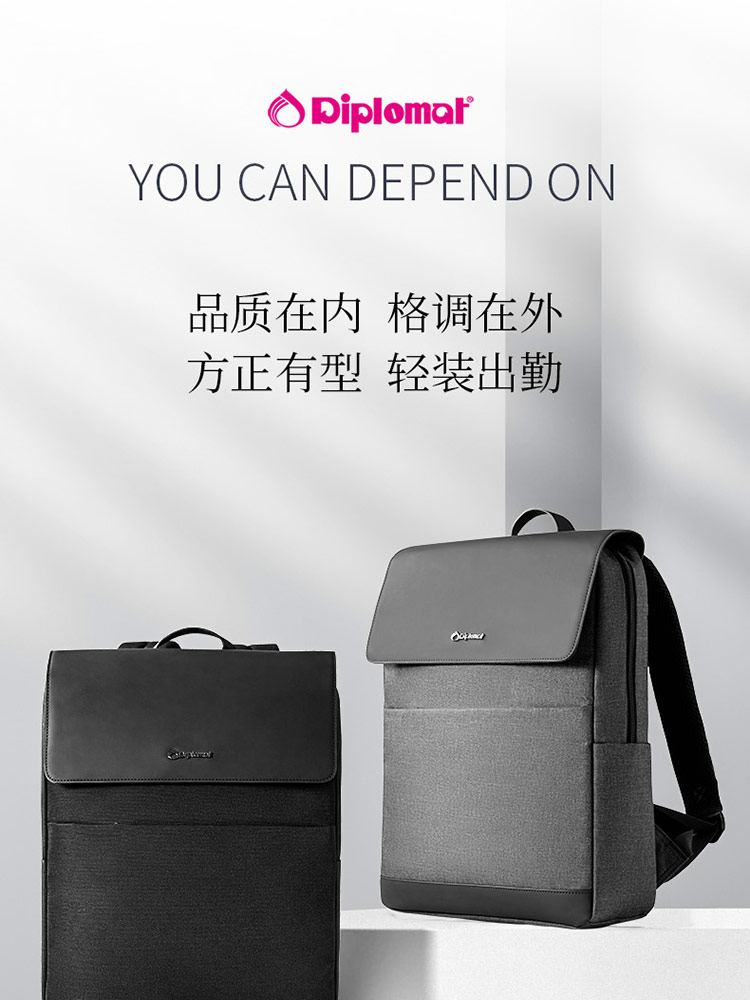 【外交官】双肩包 普区包邮 防泼水耐磨抗撕 大容量主袋分层有序 黑色/灰色 HM-2712L
