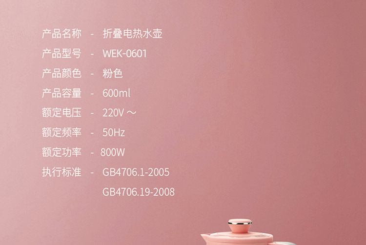 西屋Westinghouse 多功能电热折叠水壶 旅行出差烧水壶WEK-0601