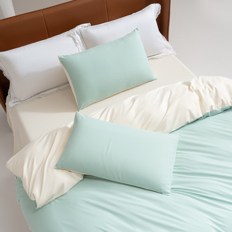水星家纺碧玉妆成 床上用品床单被套纯色磨毛四件套DH 柔软亲肤 时尚AB面