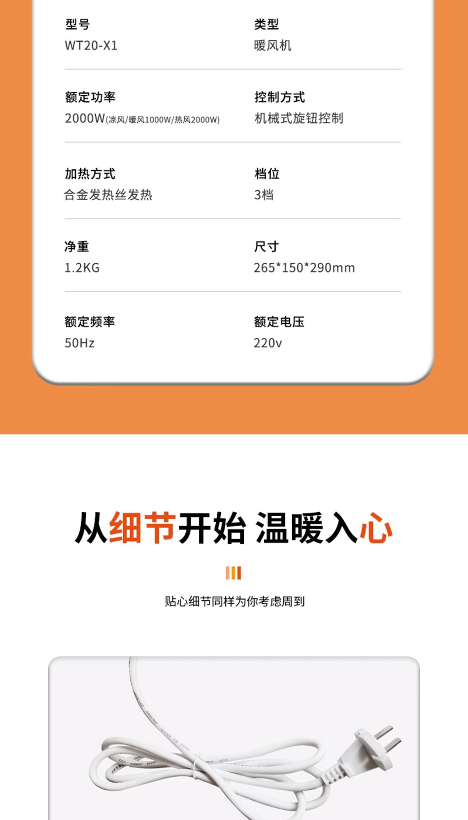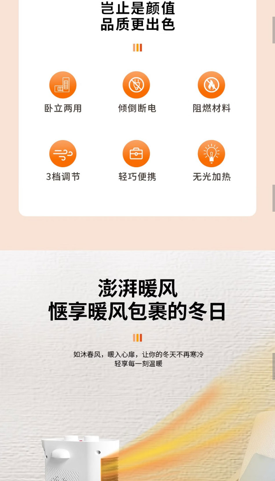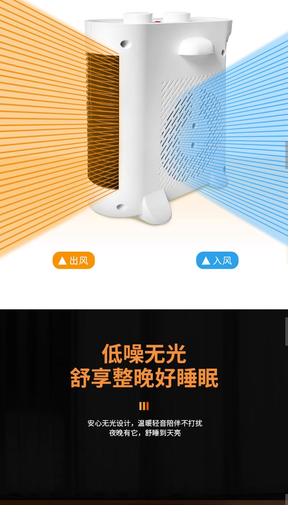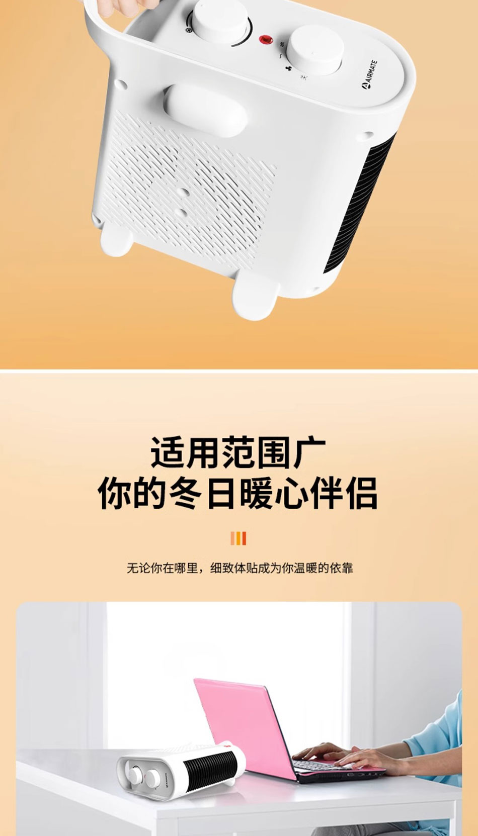 艾美特AIRMATE 取暖器家用桌面暖风机办公室宿舍卧室电暖器便携移动小型热风机即开即热节能省电暖脚神器电暖气 WT20-X1白色经典款