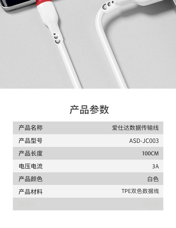 爱仕达 数据线 充电线1米长 快充多规格苹果/华为/安卓头可选ASD-JC003